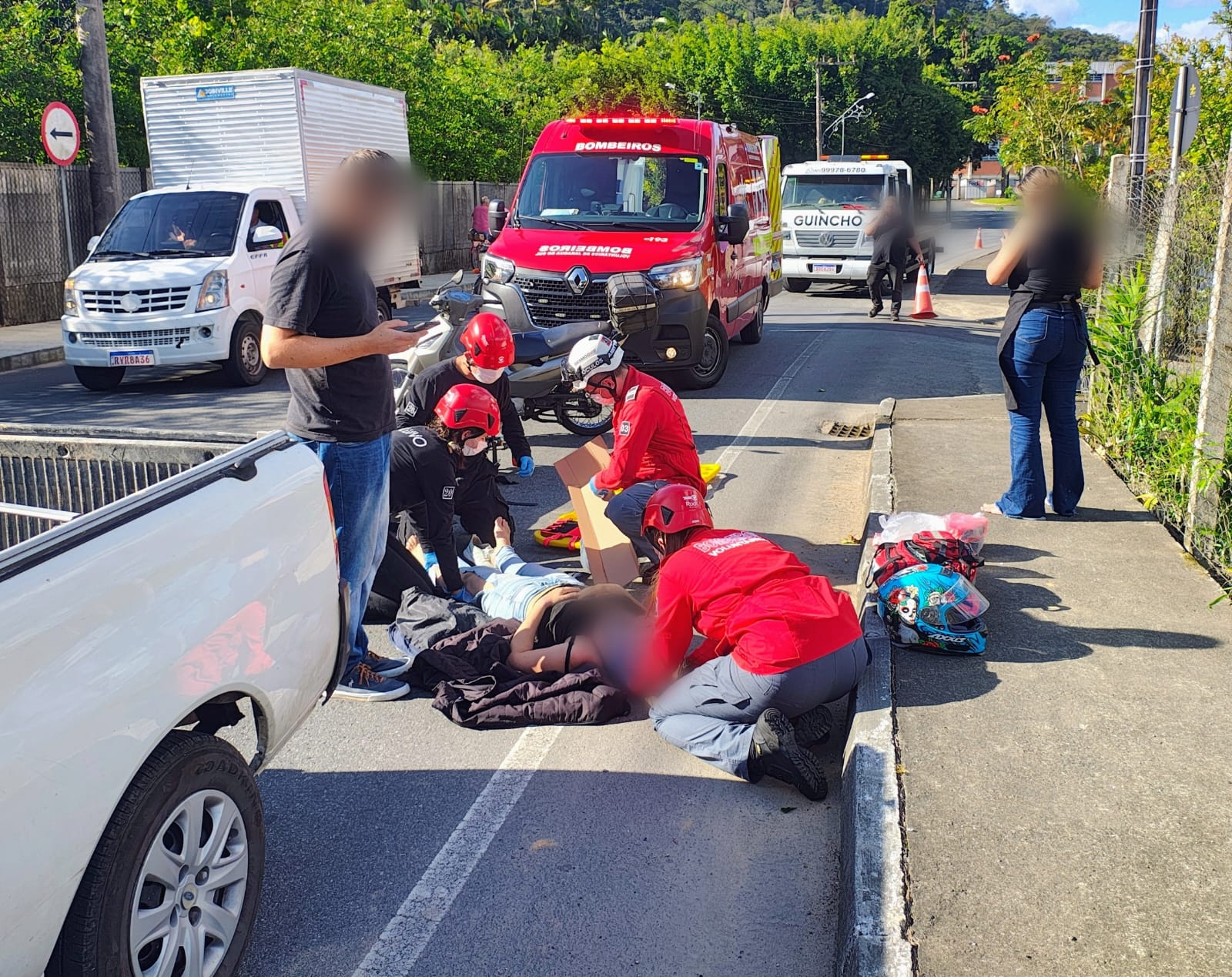 Uma mulher de 44 anos ficou ferida após colidir com a motocicleta que conduzia na traseira de um carro na tarde desta quinta-feira (23), em Jaraguá do Sul. O acidente aconteceu por volta das 15h50 na Rua Horácio Rubini, no bairro Barra do Rio Cerro.