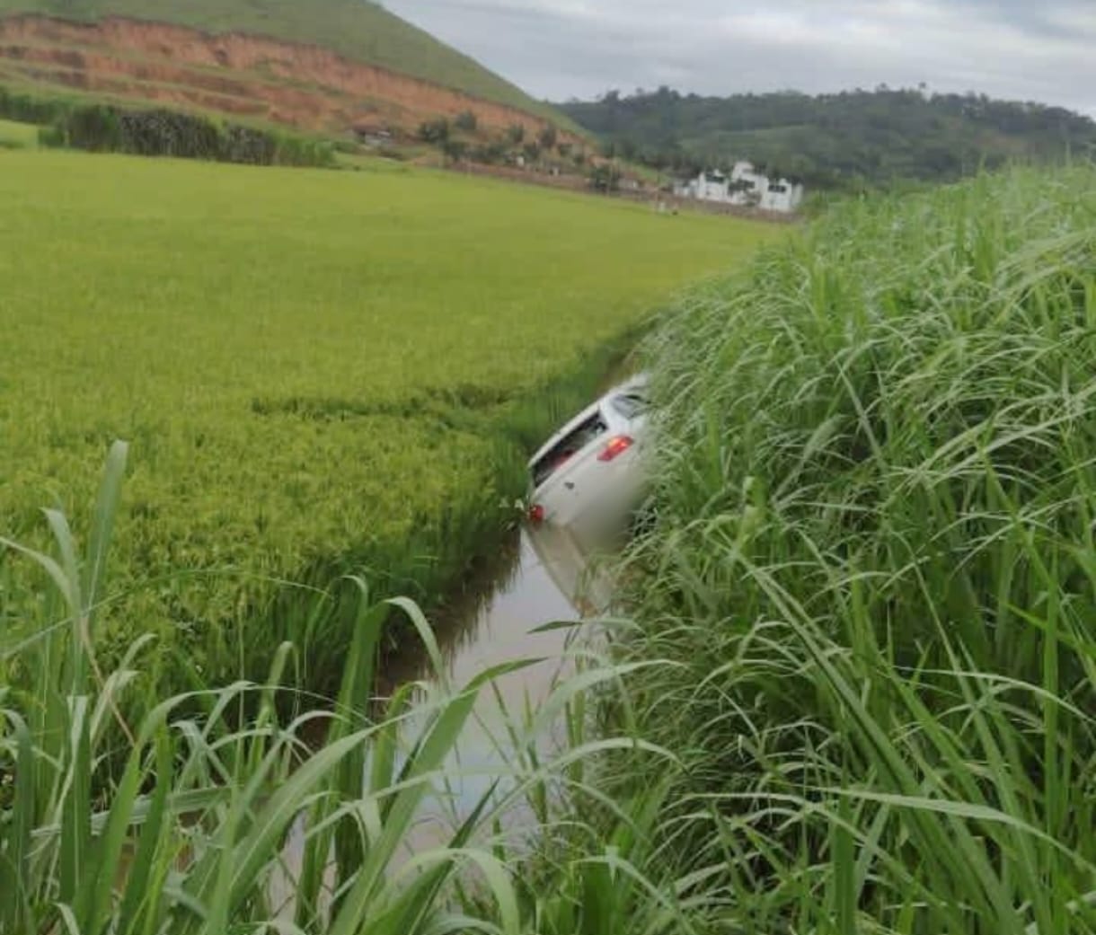Carro sai da pista e cai em área de arrozeira na SC-415 em Massaranduba