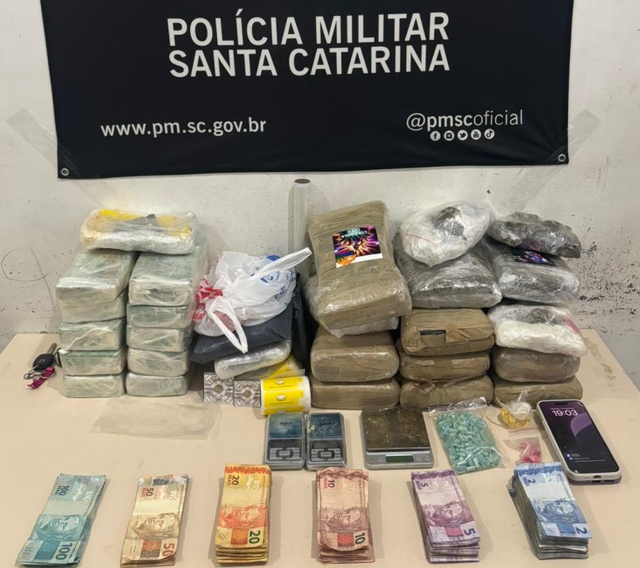 Também foram apreendidas duas balanças de precisão, embalagens plásticas utilizadas para o acondicionamento das drogas e dois veículos: um VW Gol e um Honda Civic.