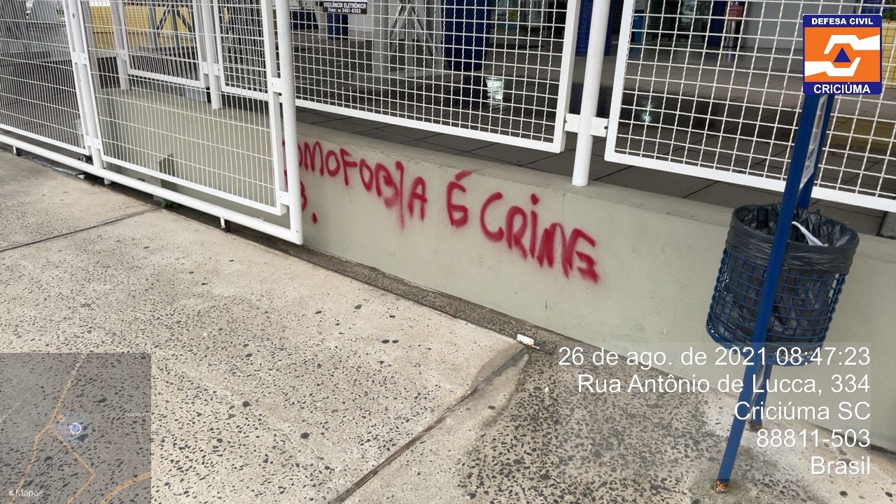 A Catedral São José, o colégio Marista e uma igreja evangélica na região central de Criciúma, amanheceram nesta quinta-feira (26) com paredes pichadas após declarações do prefeito de Criciúma, Clésio Salvaro, em relação a uma denúncia nas redes sociais de que um professor da rede municipal de ensino de Criciúma exibiu o clipe Etérea do cantor Criolo para alunos do 9º ano.