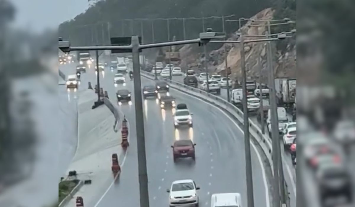 A SC-401, principal via de ligação entre a região central e o Norte da Ilha, registra alagamentos pontuais e trânsito lento desde a manhã. O grande fluxo de veículos, somado à água descendo pela pista, gera congestionamento desde Santo Antônio de Lisboa até o Cemitério Jardim da Paz, no sentido Centro.