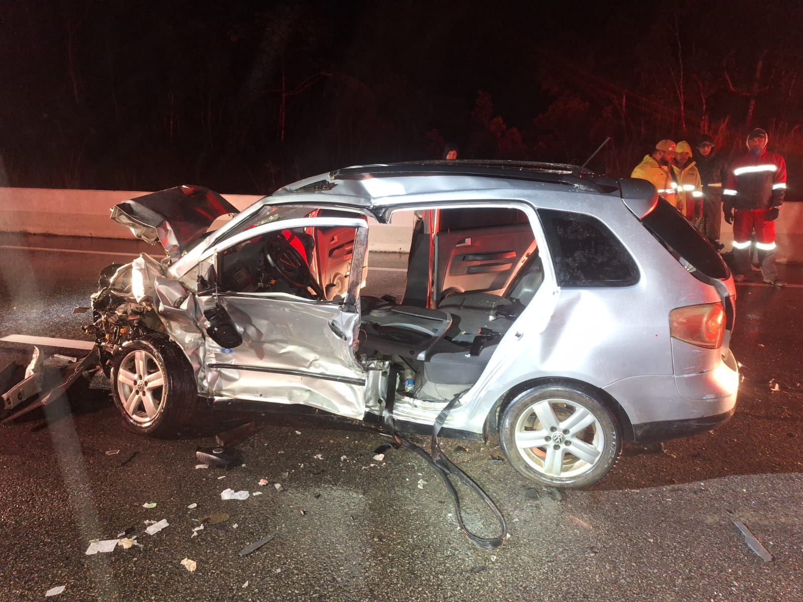 De acordo com a Polícia Rodoviária Federal (PRF), no Spacefox havia quatro pessoas: o motorista, de 30 anos, uma passageira, de 32, um menino de 8 anos e uma menina de 11, que não resistiu aos ferimentos. Os demais sofreram lesões graves.