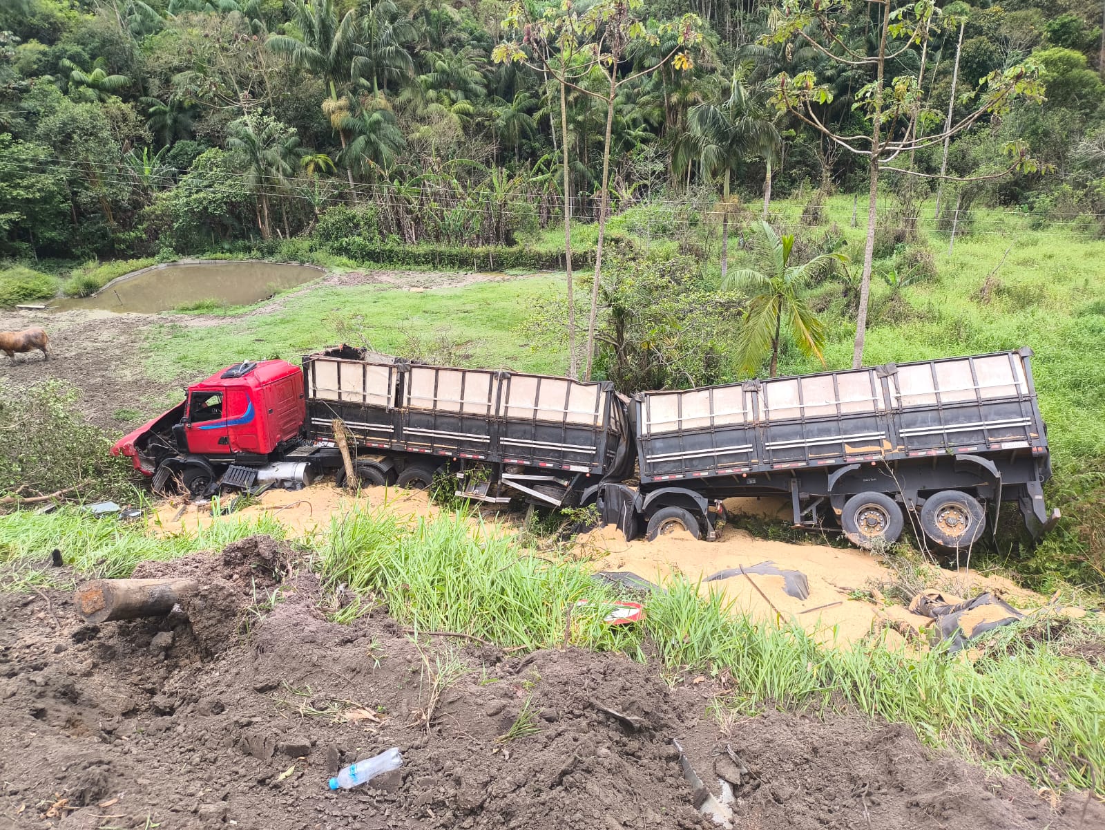 Um homem de 43 anos morreu após uma colisão entre um carro de passeio e uma carreta carregada que terminou com os dois veículos sendo lançados em ribanceiras à margem da BR-470, no km 121, na Serra de São Miguel, em Ibirama, no Alto Vale do Itajaí.