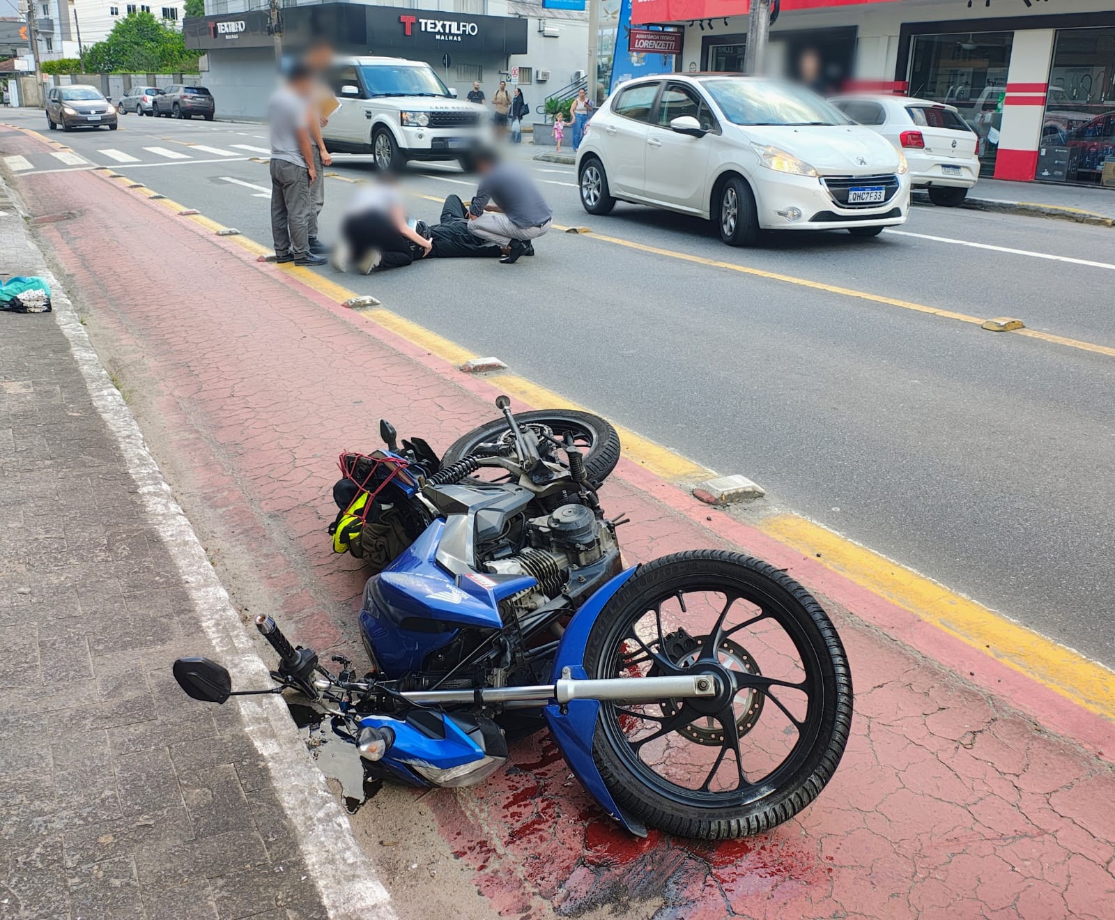 Uma colisão entre um carro e uma motocicleta deixou um jovem ferido no início da noite desta quarta-feira (3) na Avenida Marechal Deodoro da Fonseca, no Centro de Jaraguá do Sul. O acidente foi registrado por volta das 18h.