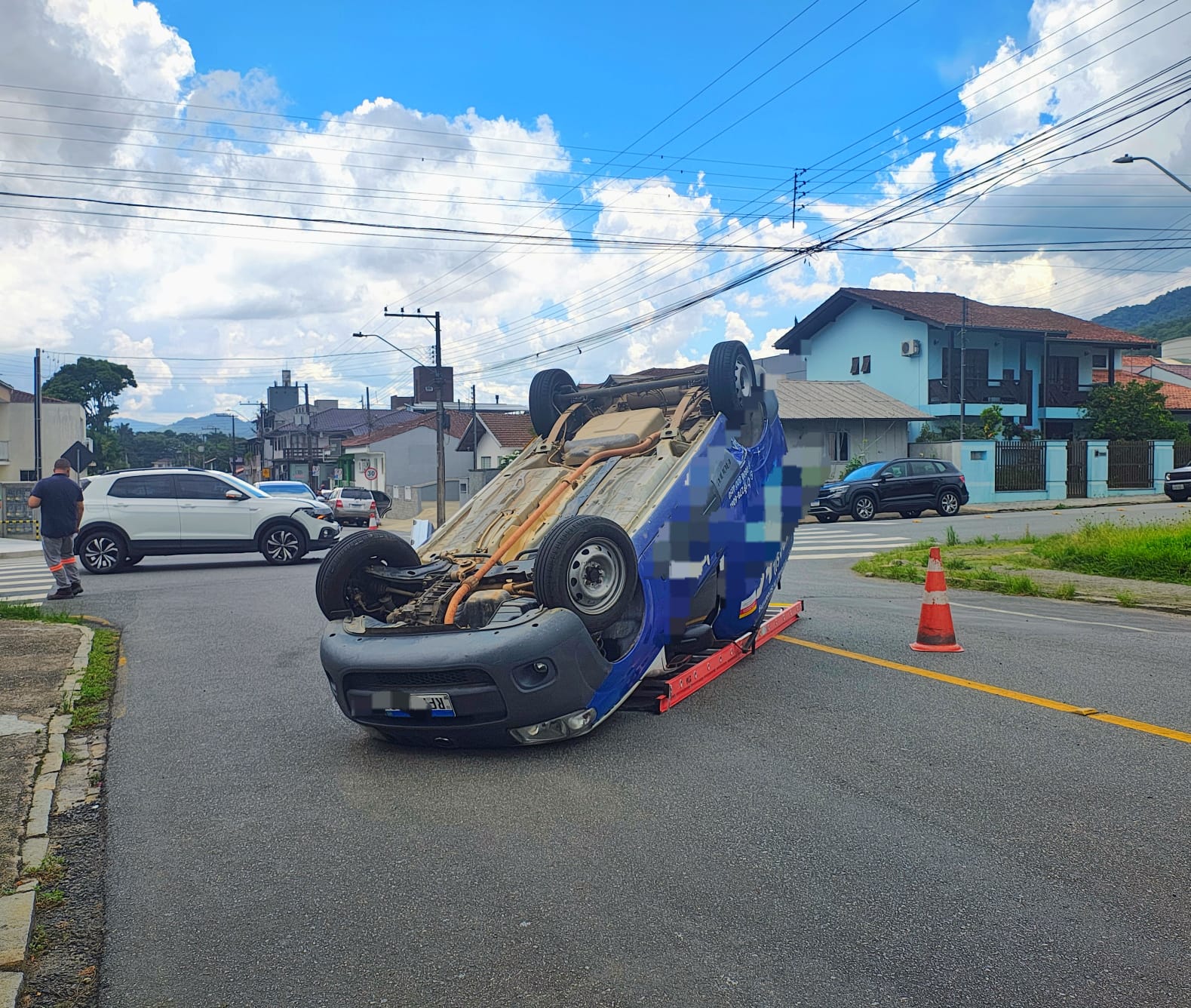 Colisão seguida de capotamento é registrada em Jaraguá do Sul