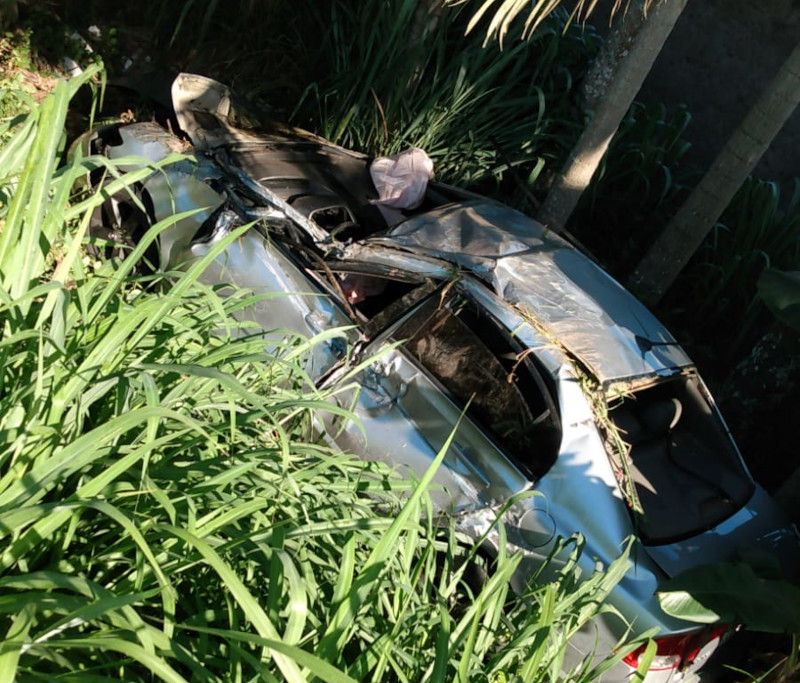 Conforme os socorristas, os veículos capotados era um Honda Civic, que apresentou princípio de incêndio, e um Ford Ka.