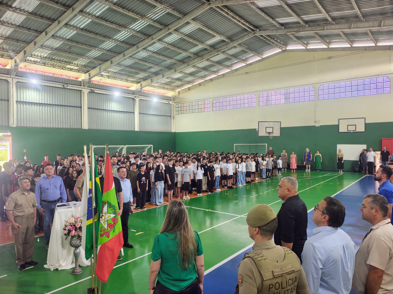 A Escola de Educação Básica Almirante Tamandaré, em Guaramirim, retomou as aulas nesta quinta-feira (19) marcando o início de sua participação no Programa Estadual das Escolas Cívico-Militares de Santa Catarina. A abertura do ano letivo foi celebrada com uma solenidade no ginásio da unidade, reunindo autoridades, estudantes, professores e membros da comunidade.