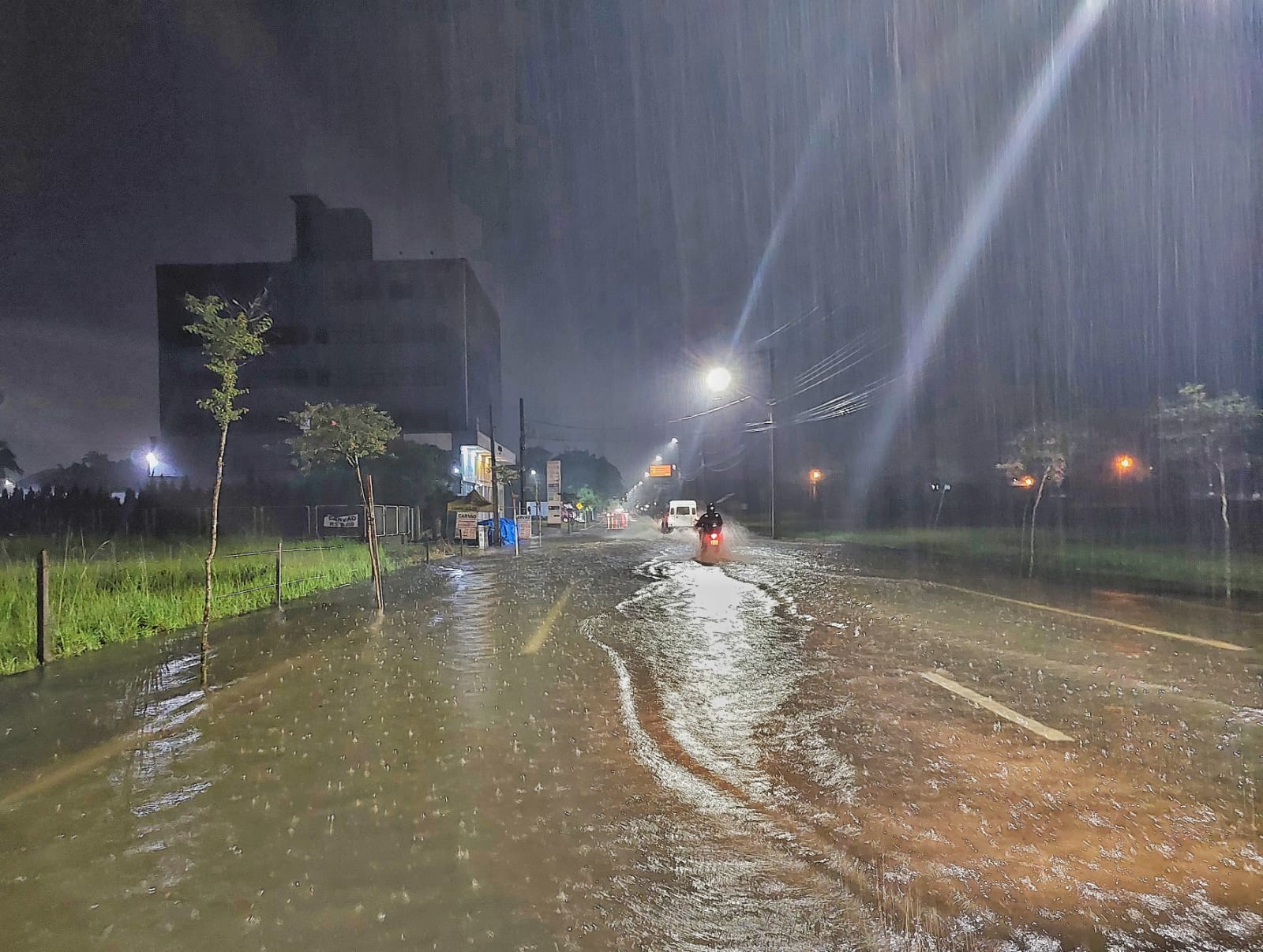 Outro ponto de alagamento foi registrado na rua Wolfgang Weege, no bairro Parque Malwee, onde um veículo acabou estragando ao atravessar o trecho.