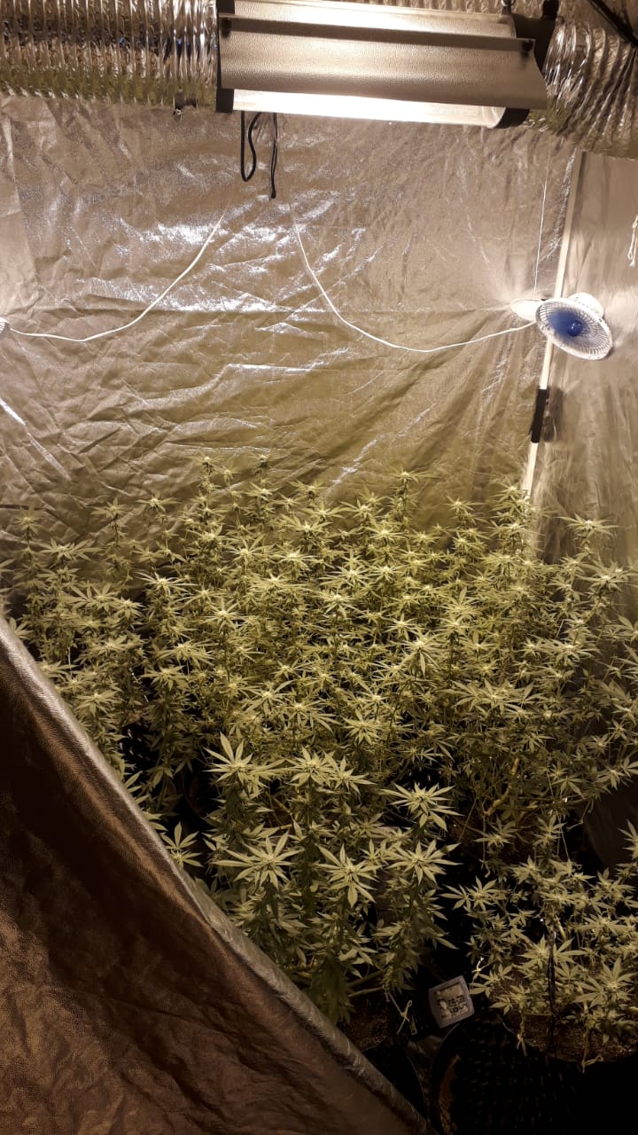 Diante desta situação, e com autorização de ambos, fez-se contato com os policiais da Guarnição Especial de Içara (GEIC), a fim de prestarem apoio até à residência, local onde foram encontrados mais 908 gramas de maconha em folhas, umedecidas e unidas, demonstrando uma fase de preparo. Em um dos quartos ainda foram localizados 19 pés de maconha em uma estufa, com diversos equipamentos ligados (ventiladores e exaustores).