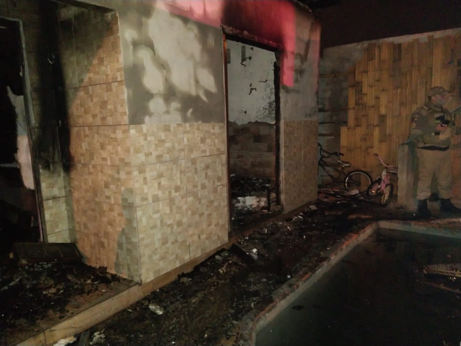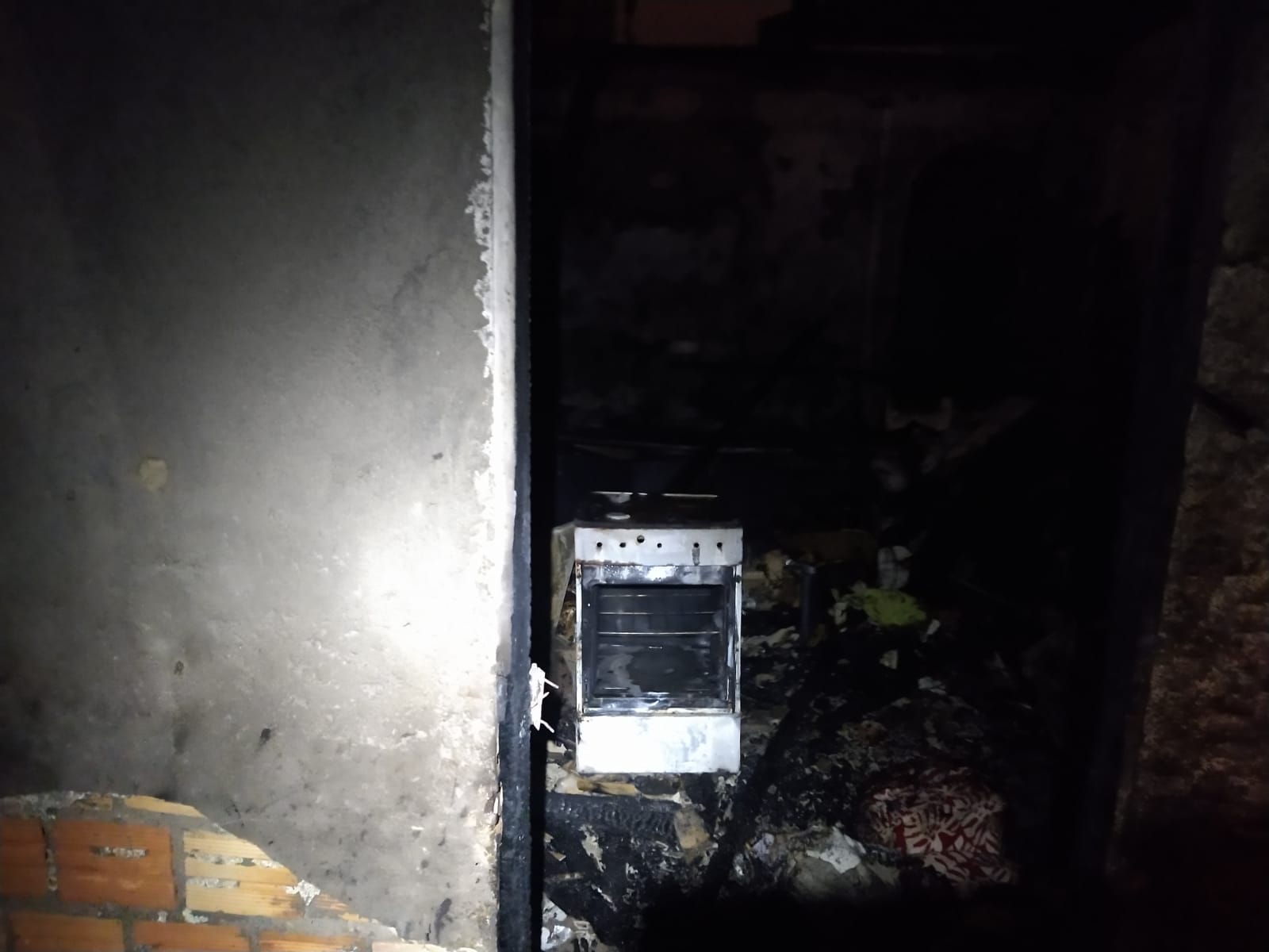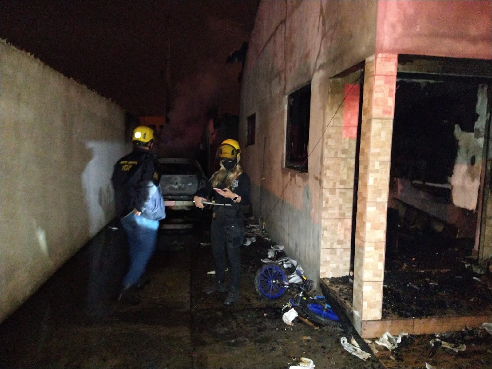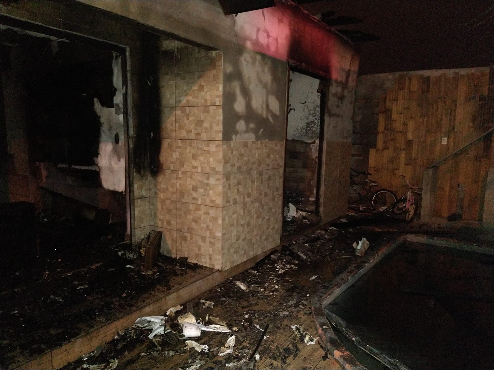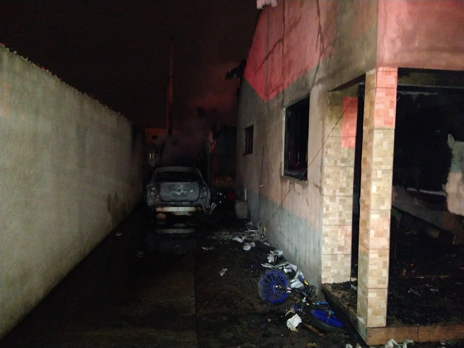 O imóvel, uma edícula aos fundos e um veículo Nissan Sentra que estava na garagem, foram atingidos pelas chamas.