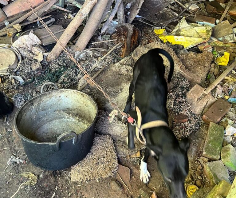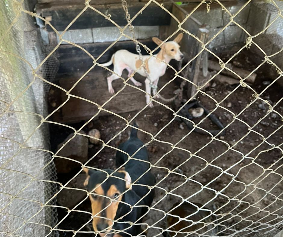 Ao todo, oito aves e oito cães foram encontrados na residência – todos em más condições.
