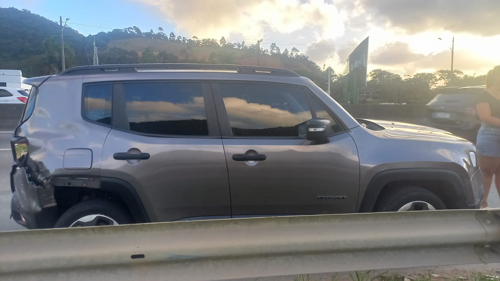 Um Jeep Renegade também foi danificado no acidente. Após a colisão, o Fox saiu da pista e percorreu mais alguns metros pela grama na lateral da BR-101, até cair em uma vala.