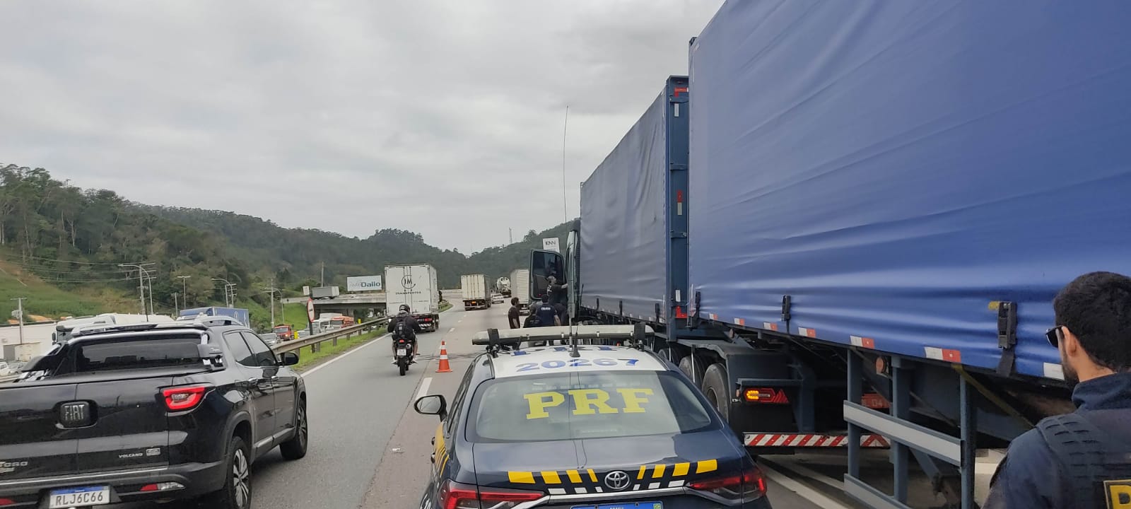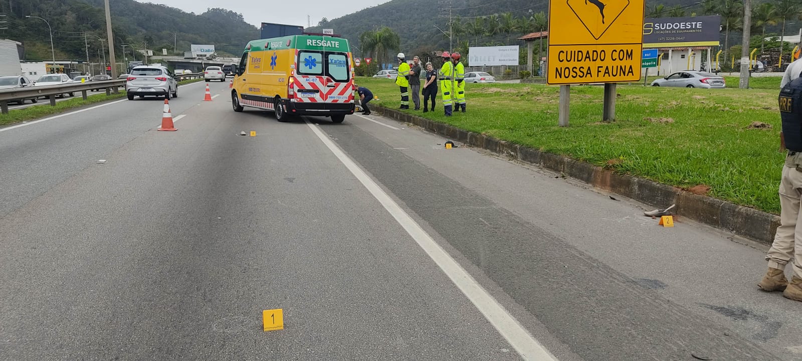 Socorristas da Arteris Litoral Sul, concessionária que administra a rodovia, e policiais rodoviários federais foram acionados para ocorrência.