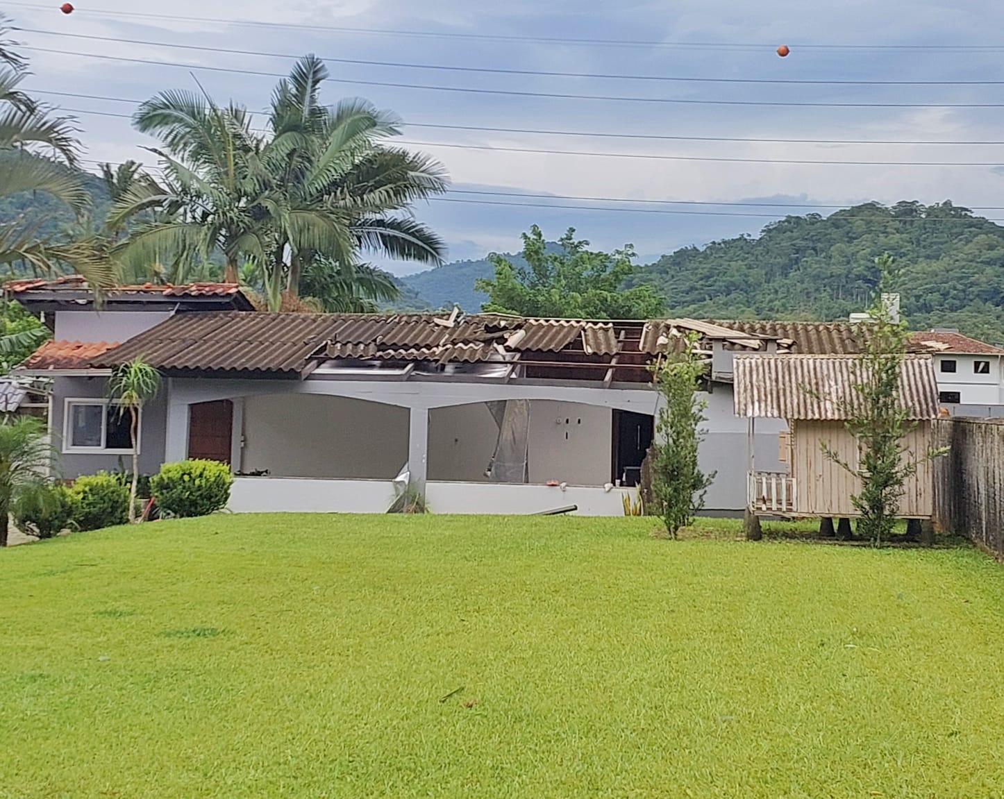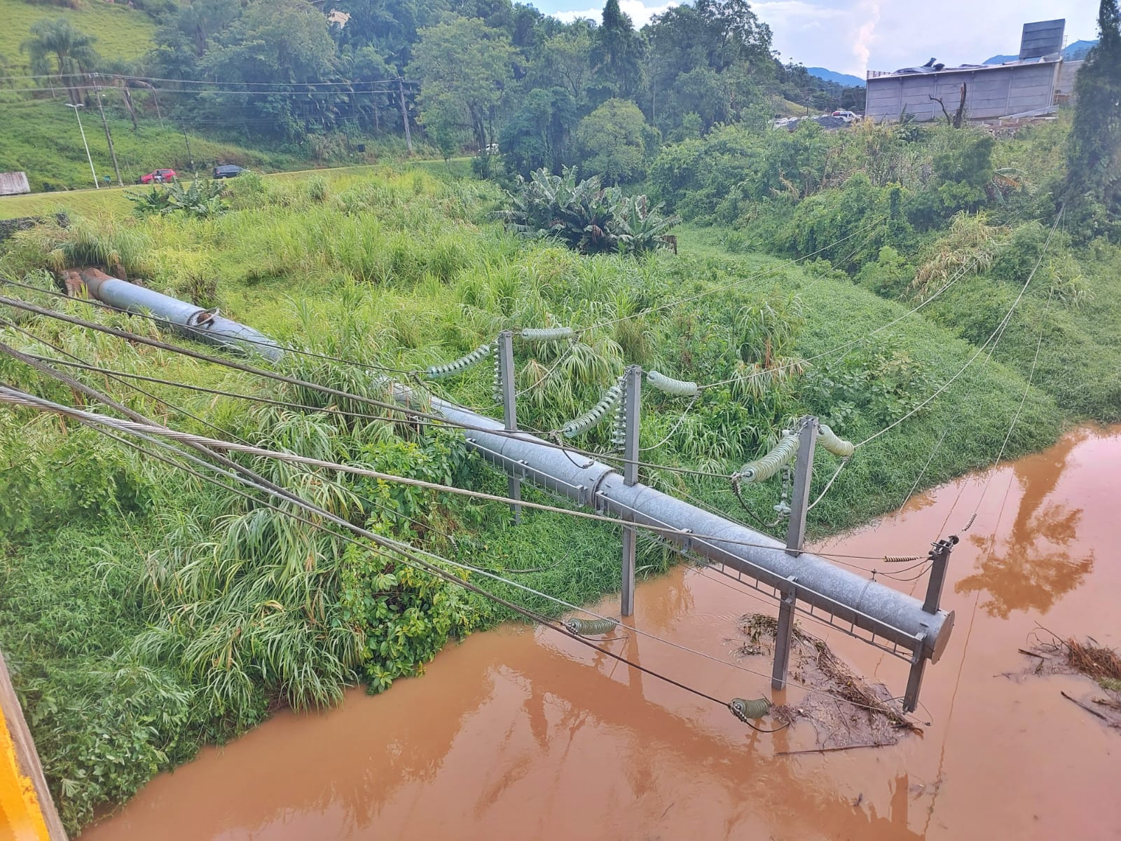 Na Barra do Rio Cerro, dois postes de alta tensão caíram e interditaram a Ponte Mario Cammillo Demarchi, que liga a rua Linda Homburg Kreutzfeld à rodovia SC-110.