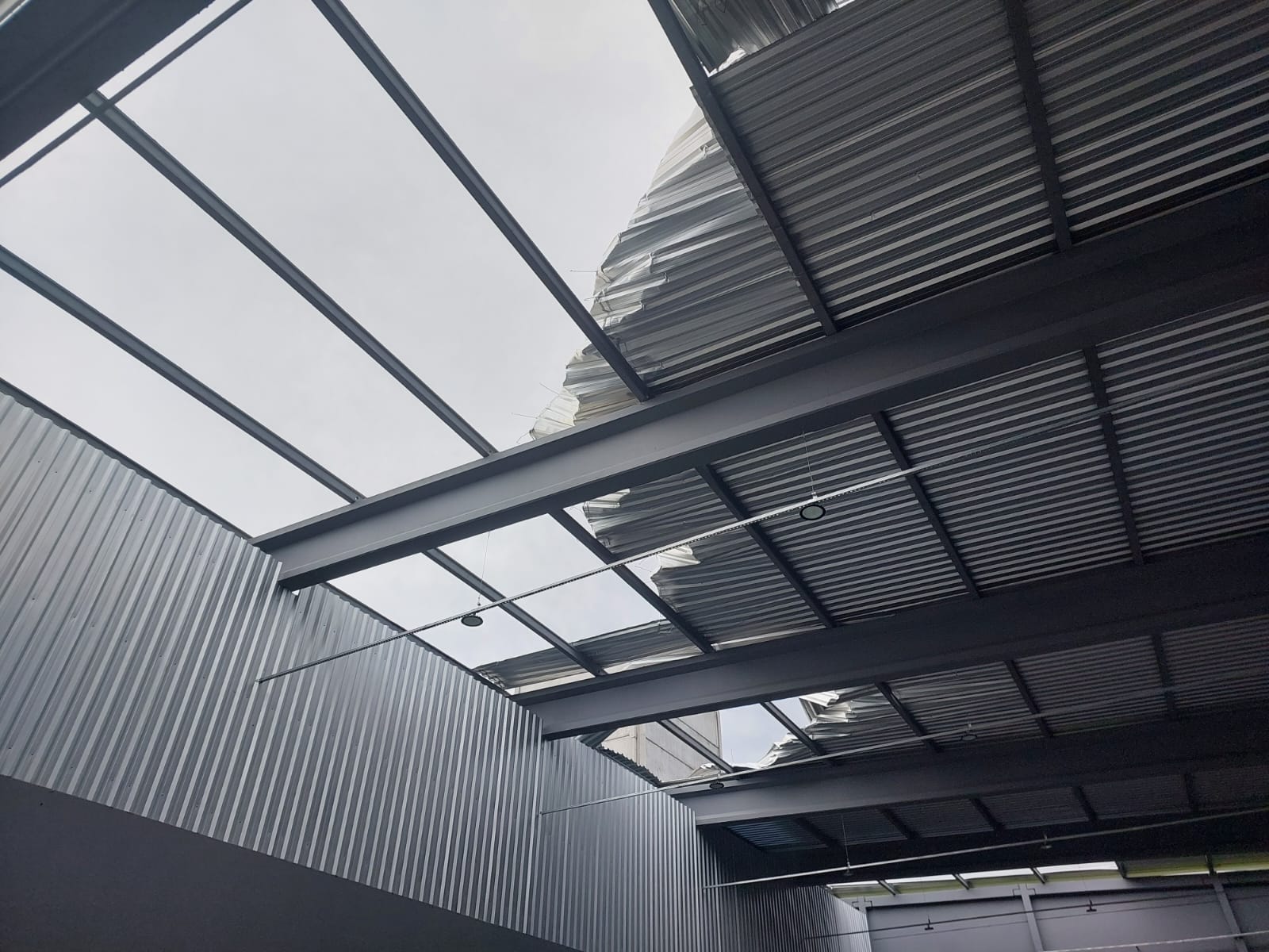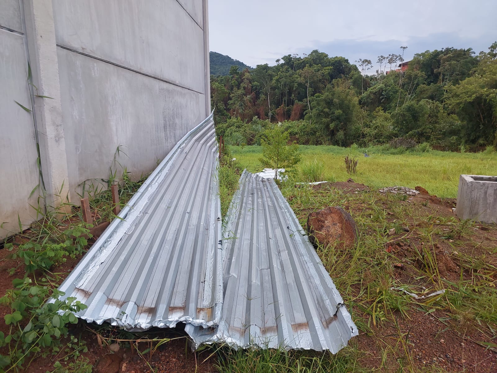 Além disso, o temporal também derrubou placas, quebrou vidros e destelhou empresas e casas da região.