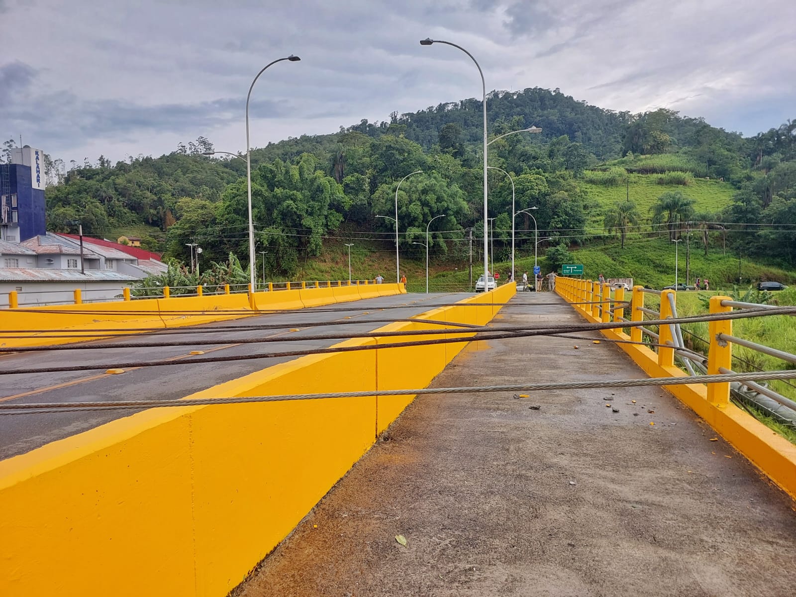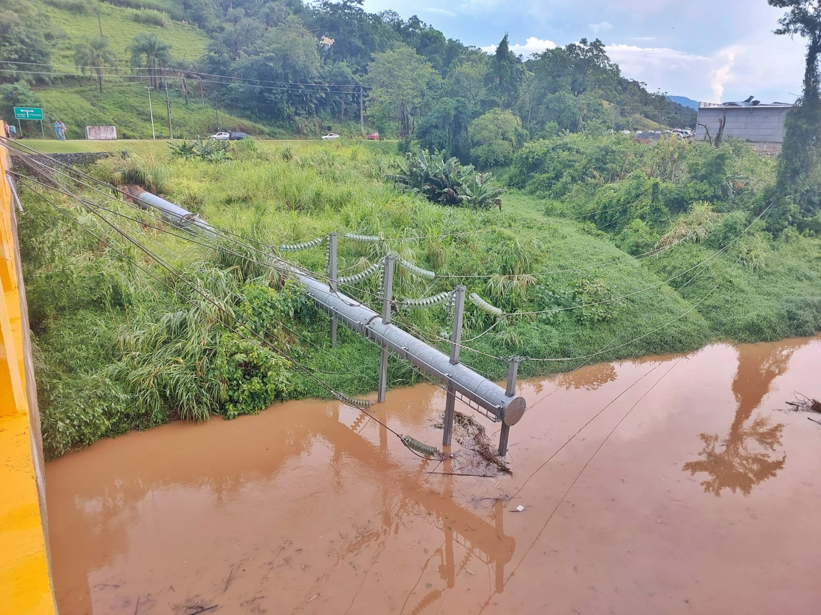Um deles chegou a cair no rio, e a fiação ficou em cima da ponte.