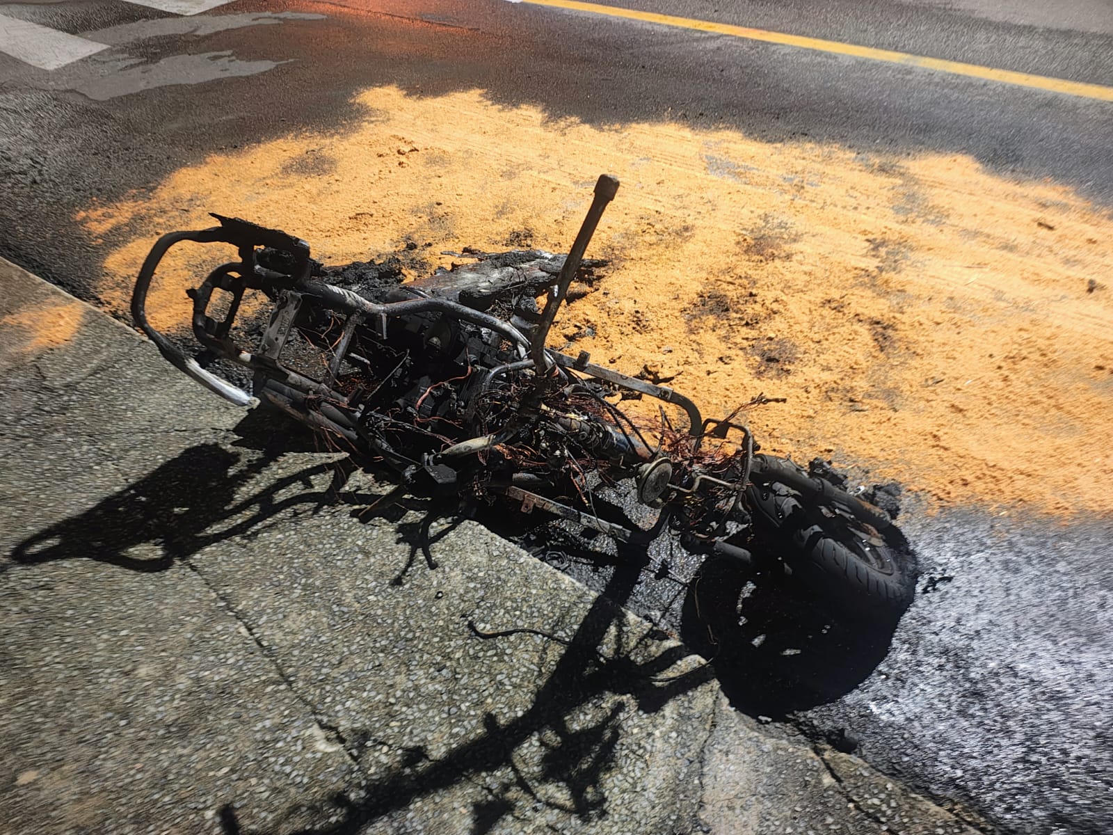 De acordo com as informações, a moto era do modelo scooter. Não houve registro de feridos. As causas do incêndio não foram informadas.