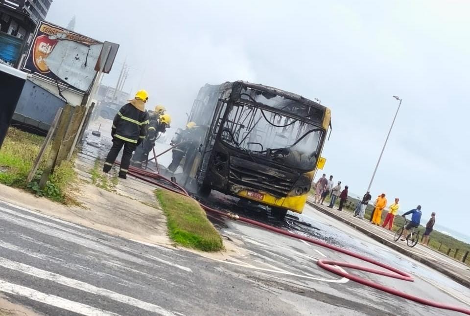 Um ônibus da empresa Verdes Mares pegou fogo no início da manhã desta terça-feira (2), na Avenida Atlântica, localizada na Praia do Ervino, em São Francisco do Sul.