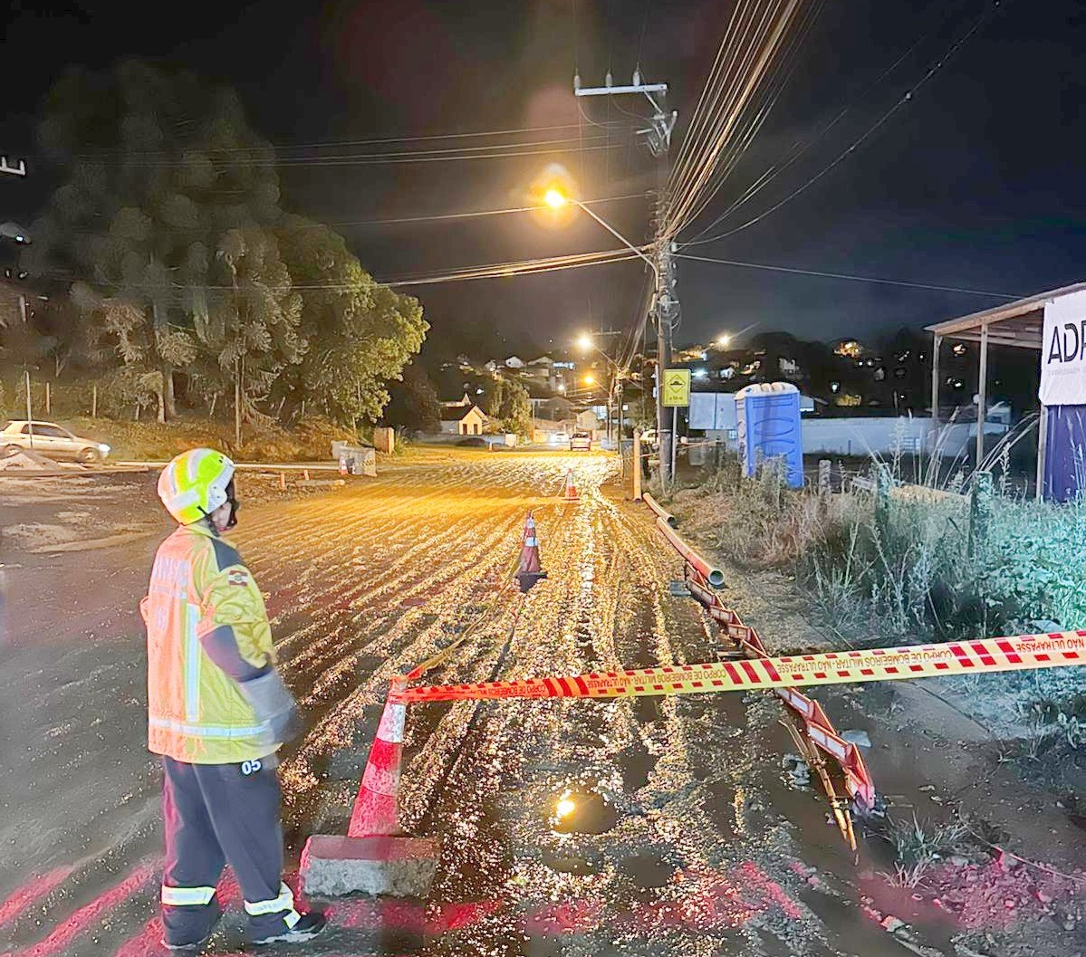 Uma equipe adicional dos bombeiros realizou o isolamento da área com fita zebrada para garantir a segurança no local. A Celesc e a Polícia Militar de Santa Catarina também foram acionadas para atender a ocorrência e auxiliar nos procedimentos necessários.