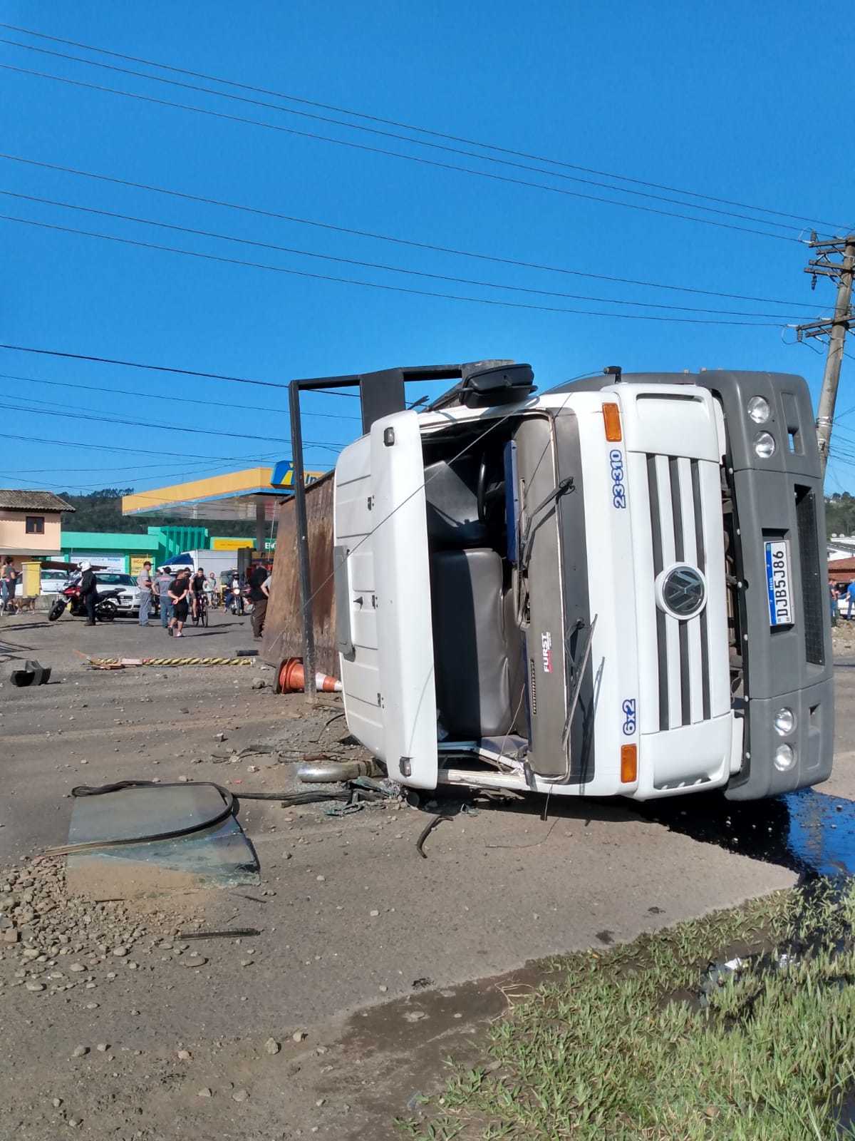 Informações preliminares são de que o condutor do caminhão não se feriu e saiu sozinho da cabine.
