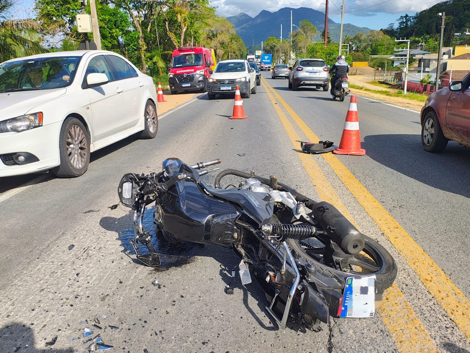 Um motociclista de 18 anos ficou ferido após se envolver em uma colisão por volta das 15h37 desta sexta-feira (24), na BR-280, nas proximidades da rua Prefeito Engelbert Oechsler, no bairro Água Verde, em Jaraguá do Sul.