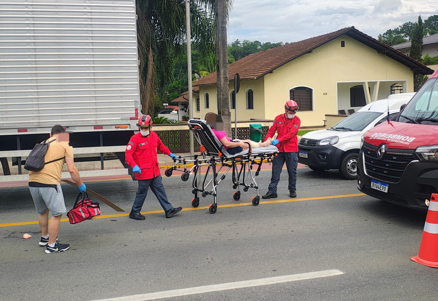 O Corpo de Bombeiros Voluntários de Jaraguá do Sul foi acionado na manhã desta segunda-feira (12) para atender um acidente de trânsito envolvendo um caminhão e uma motocicleta na Rua Walter Marquardt, no bairro Barra do Rio Molha.