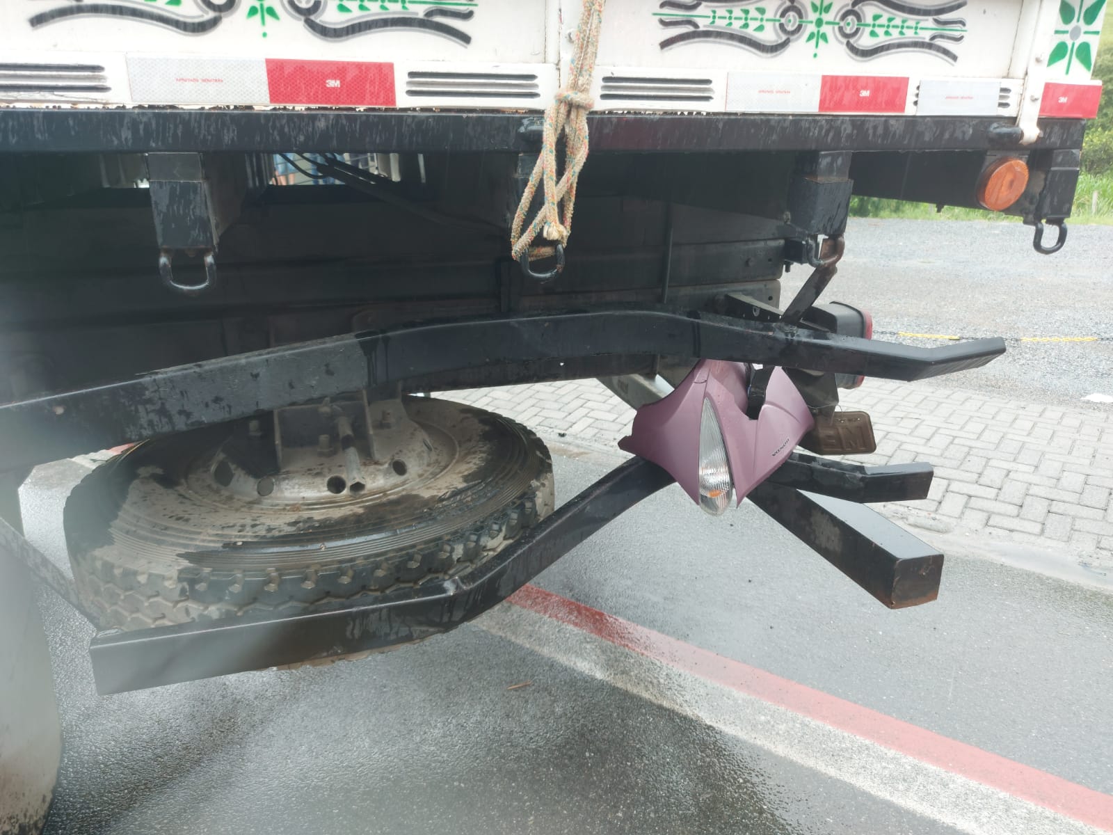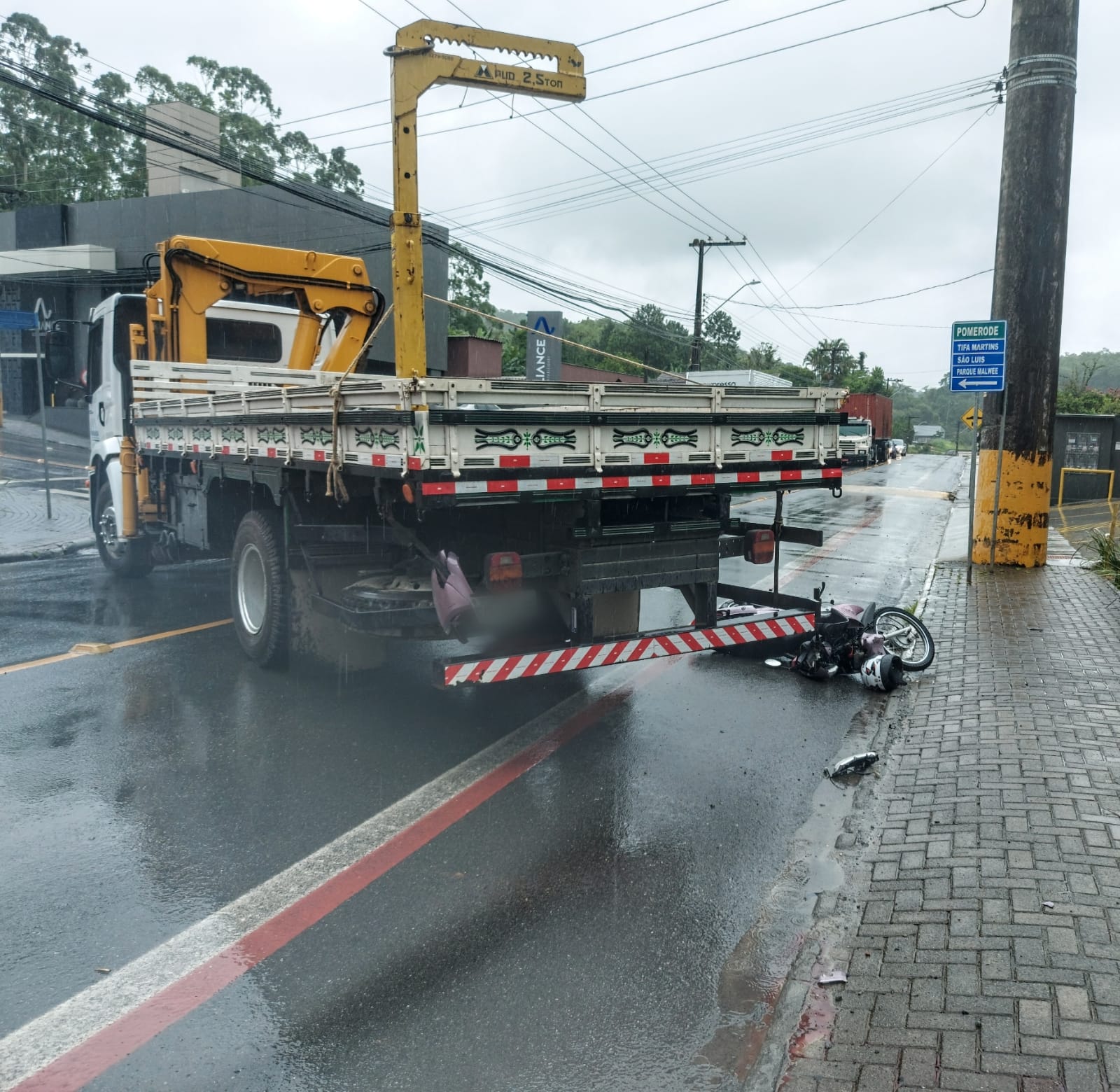 De acordo com o motorista do caminhão, ele seguia pela rua José Narloch quando rodou na pista e invadiu a rua Joaquim Francisco de Paula. O motociclista trafegava pela via e acabou atingindo a lateral do caminhão.