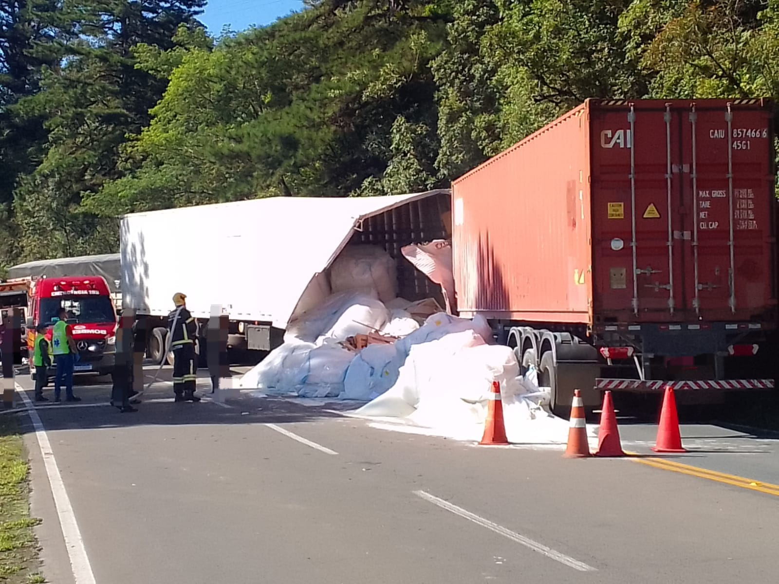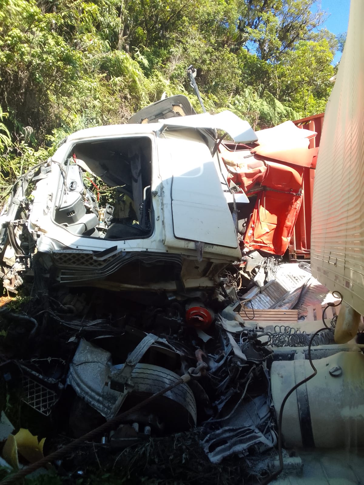 A vítima estava em um caminhão com placas de Caçador (SC). O óbito foi constatado pela equipe do helicóptero Águia, de Joinville.