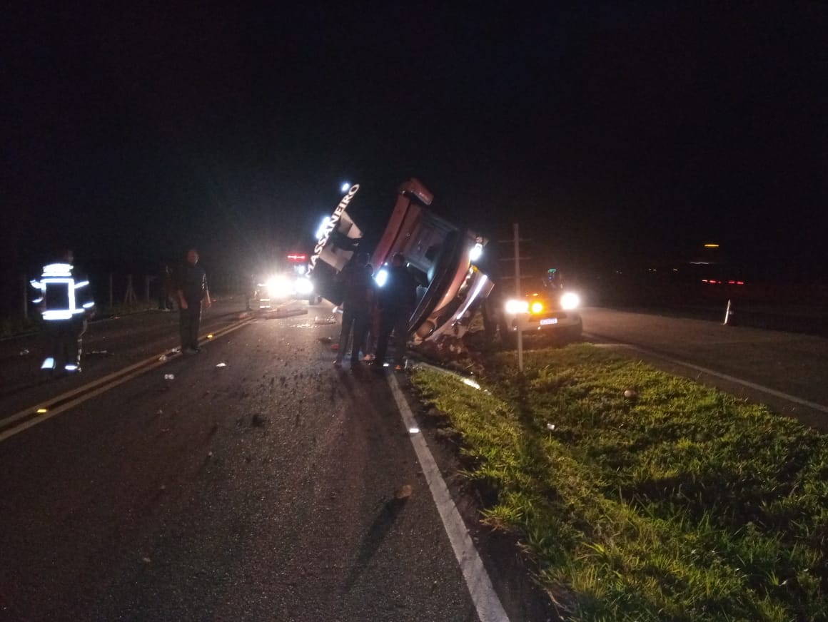 Conforme o Corpo de Bombeiros, por volta das 3h25 os militares foram acionados para o socorro das vítimas. Conforme a Polícia Rodoviária Federal, o condutor, um homem de 46 anos saiu do leito carroçavel para a pista de desaceleração, caindo no canteiro que divide as duas pistas.