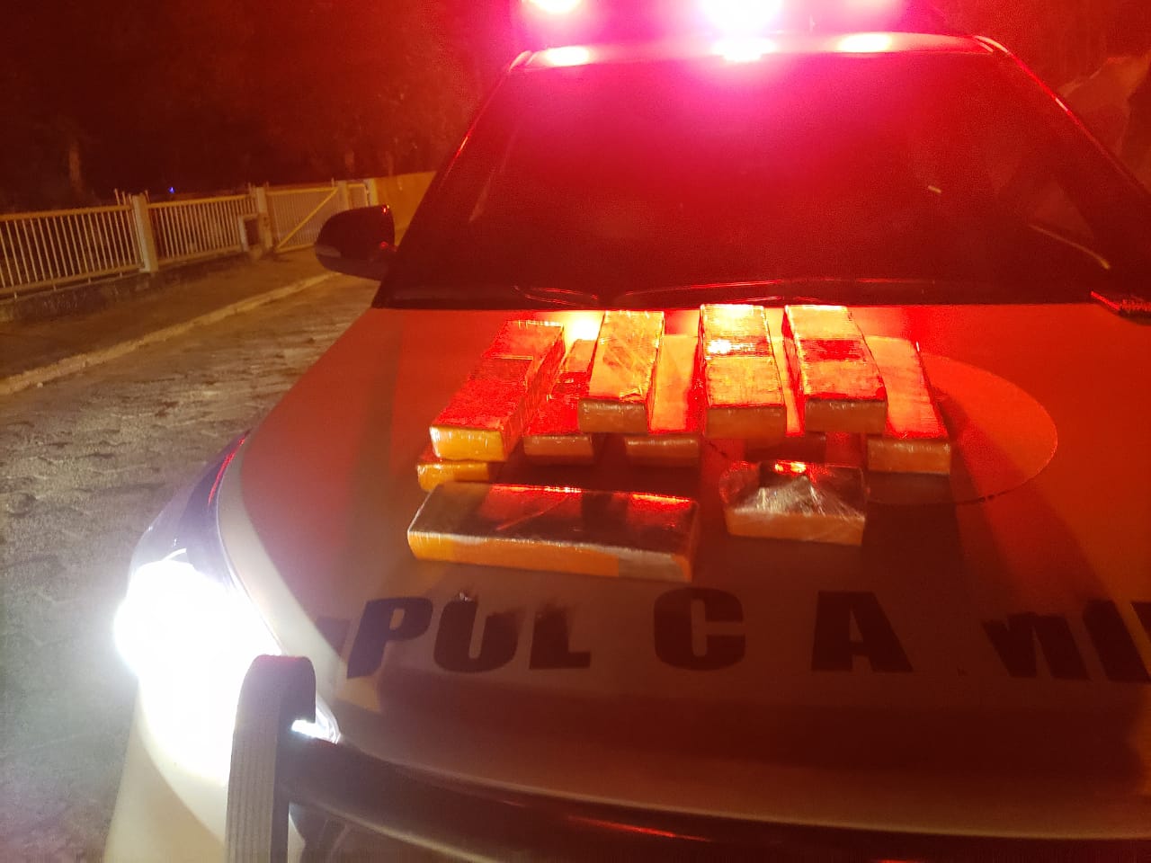 Os policiais encontraram, no interior do veículo dele, aproximadamente oito quilos de maconha, em dez tabletes e dois torrões.