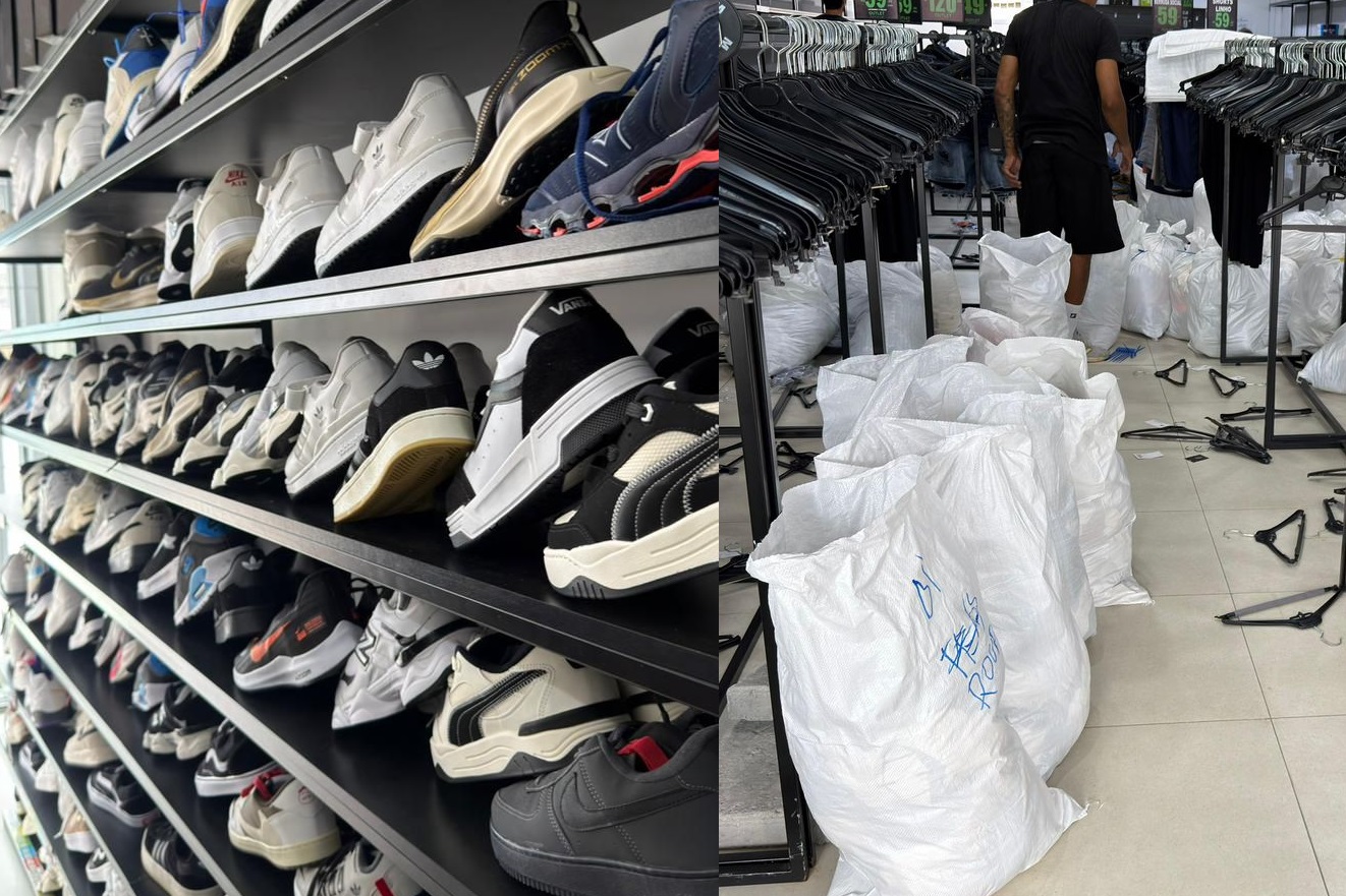 Entre os itens recolhidos estão calçados, roupas, perfumes, bonés, relógios e acessórios com marcas conhecidas. Também foram apreendidos equipamentos eletrônicos e documentos que devem contribuir para o avanço das investigações.