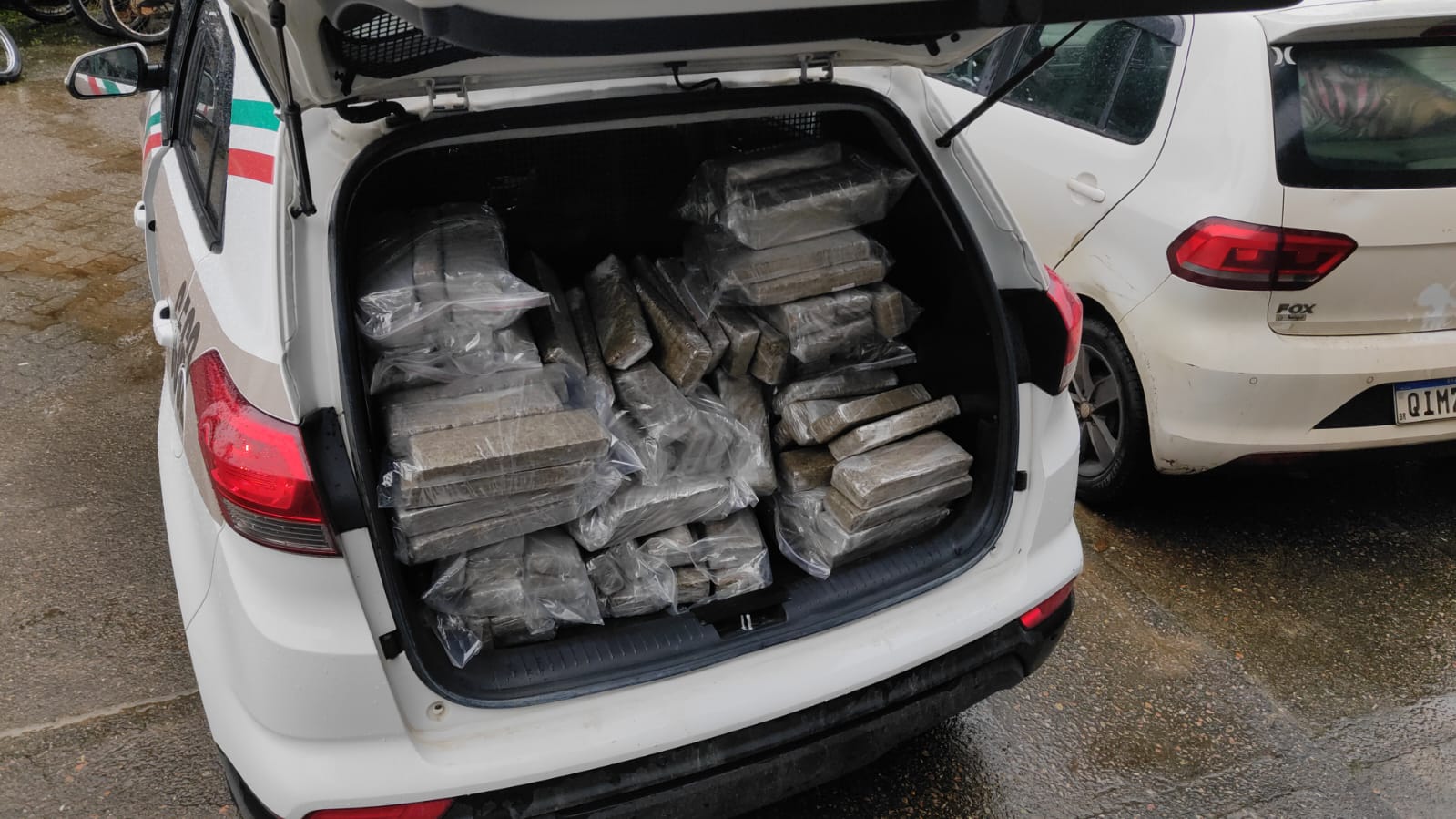 Durante a busca veicular, foram localizados 135 quilos de maconha, no porta-malas.