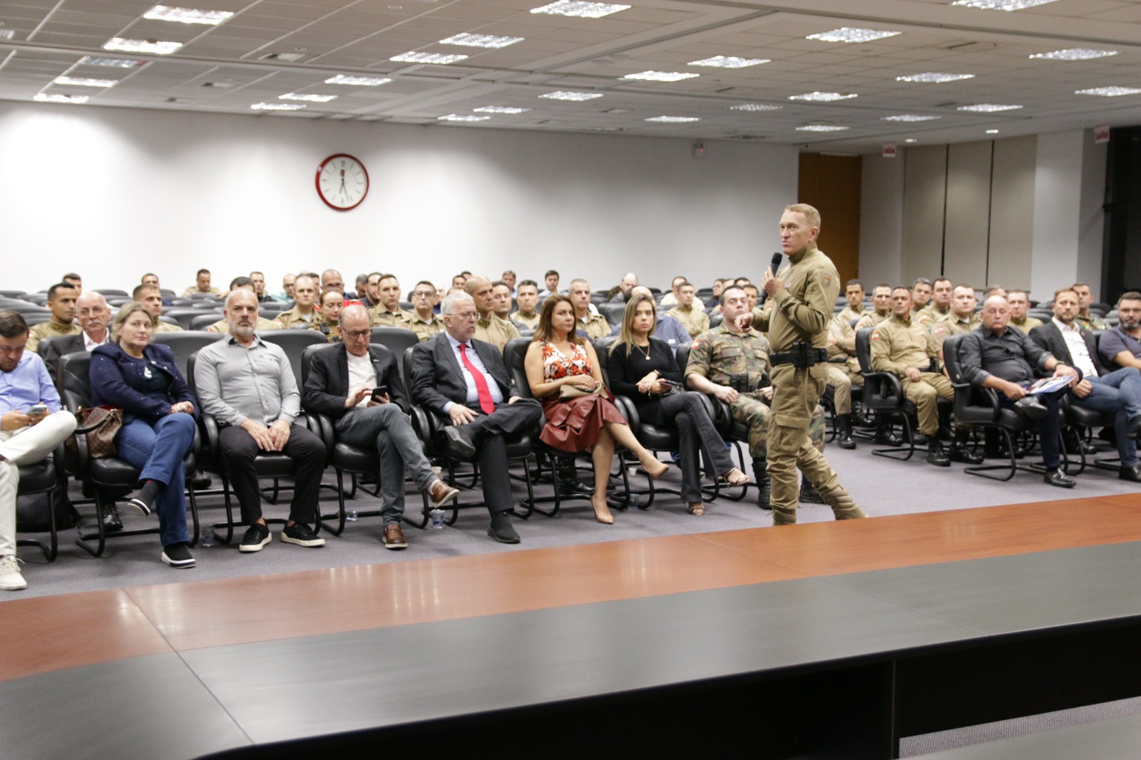Na ocasião, foram apresentados o Projeto de Ordem Pública e o Plano de Comando 360, no auditório da Acij (Associação Empresarial de Joinville).