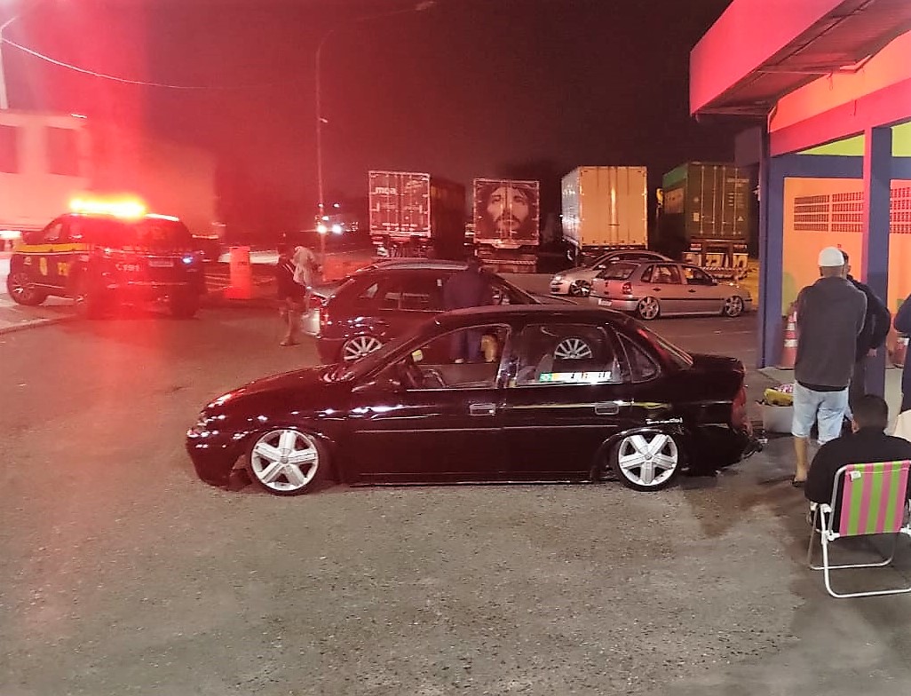 A Polícia Rodoviária Federal (PRF) flagrou, na noite deste domingo (17), na BR-101 em Joinville, cinco veículos com o sistema de suspensão alterado, fora das especificações máximas permitidas pela legislação.