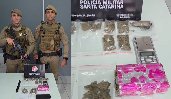Ao todo, os policiais apreenderam 414 gramas de maconha e 2,2 gramas de cocaína, além de uma balança de precisão funcional, uma faca com vestígios de entorpecente e diversas embalagens plásticas do tipo “ziplock”, comumente utilizadas para o fracionamento e a comercialização de drogas.