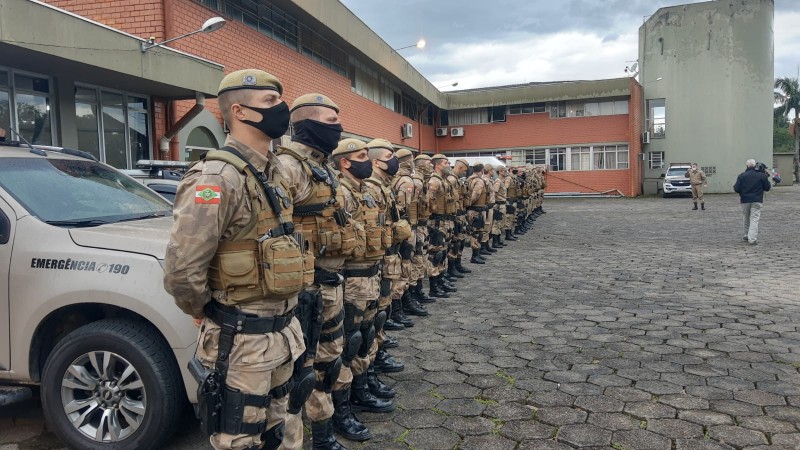 A operação conta também com a participação de policiais locais e de outras Regiões de Polícia Militar (RPM) de Santa Catarina.