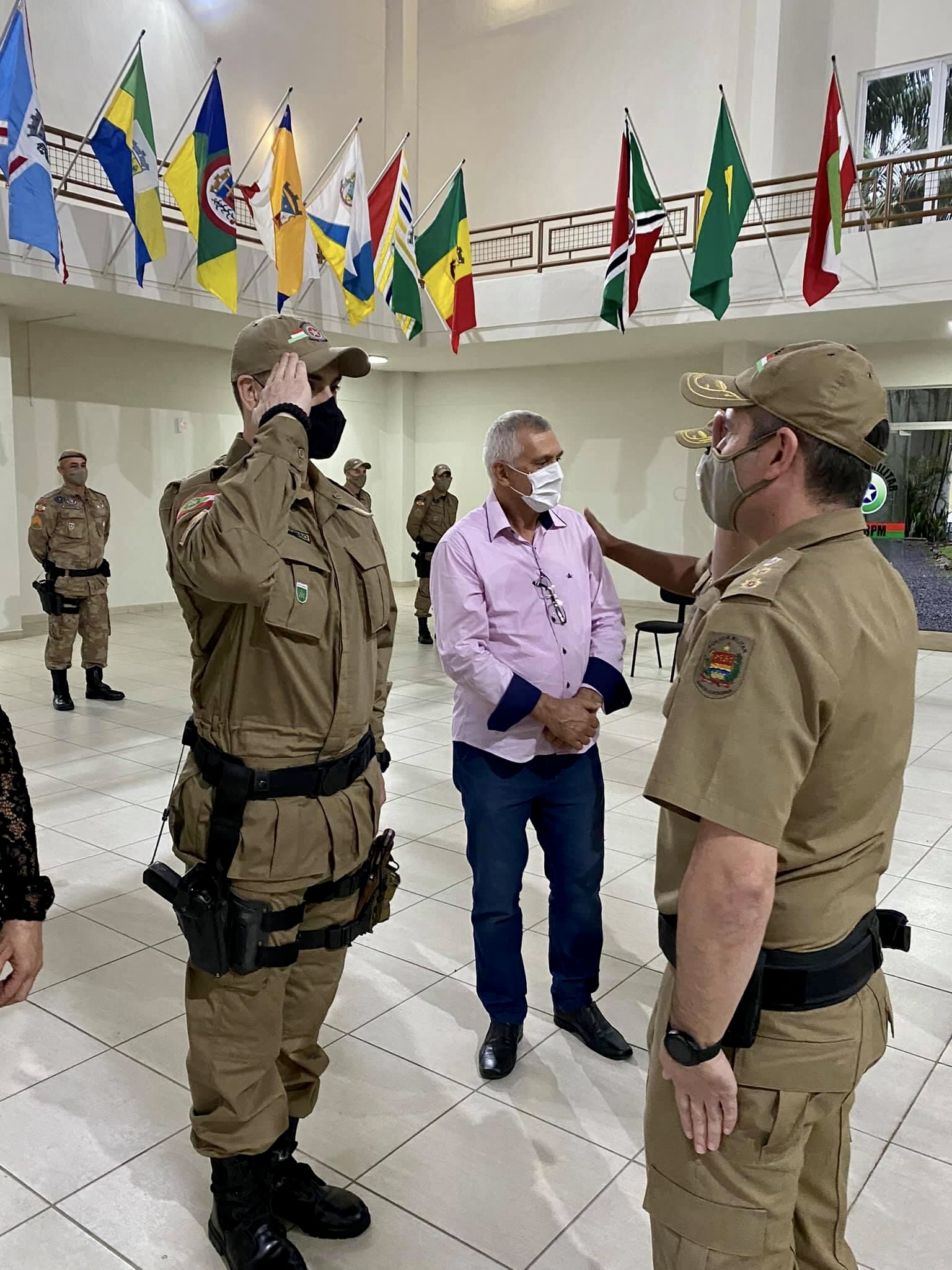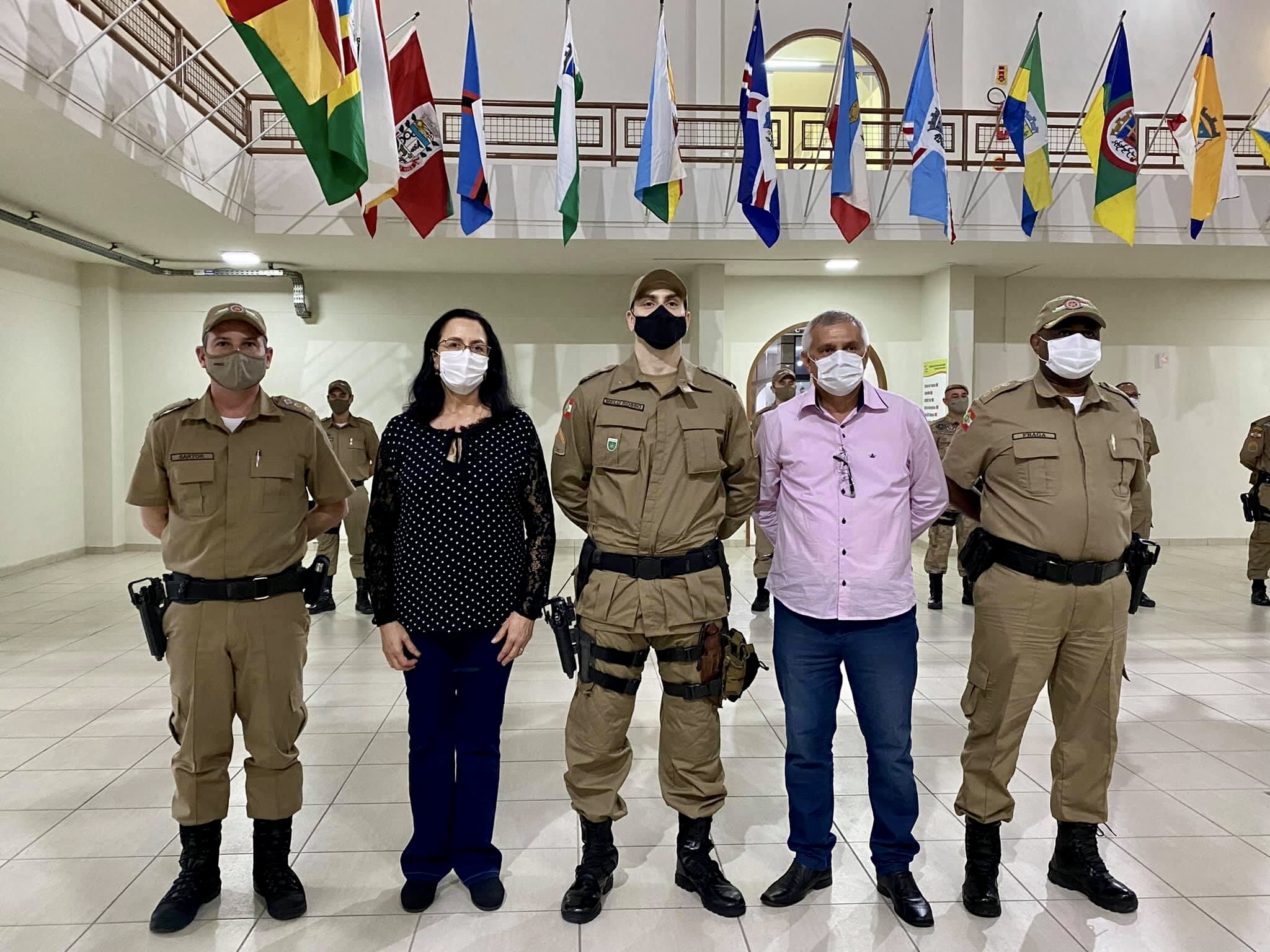 Participaram da formatura o comandante da 6ª Região de Polícia Militar (RPM), coronel Evandro de Andrade Fraga; acompanhado do Chefe do Estado Maior da 6ª RPM, tenente-coronel Cristian Dimitri Andrade e o comandante do 9º BPM, tenente-coronel Sandi Murís de Medeiros Sartor.