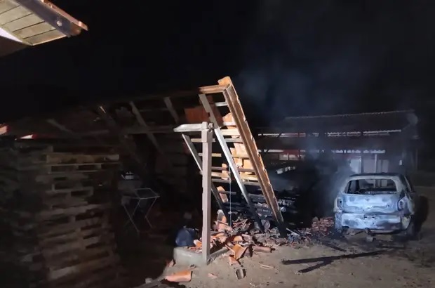 Possível incêndio criminoso destrói residência e carro em Braço do Norte