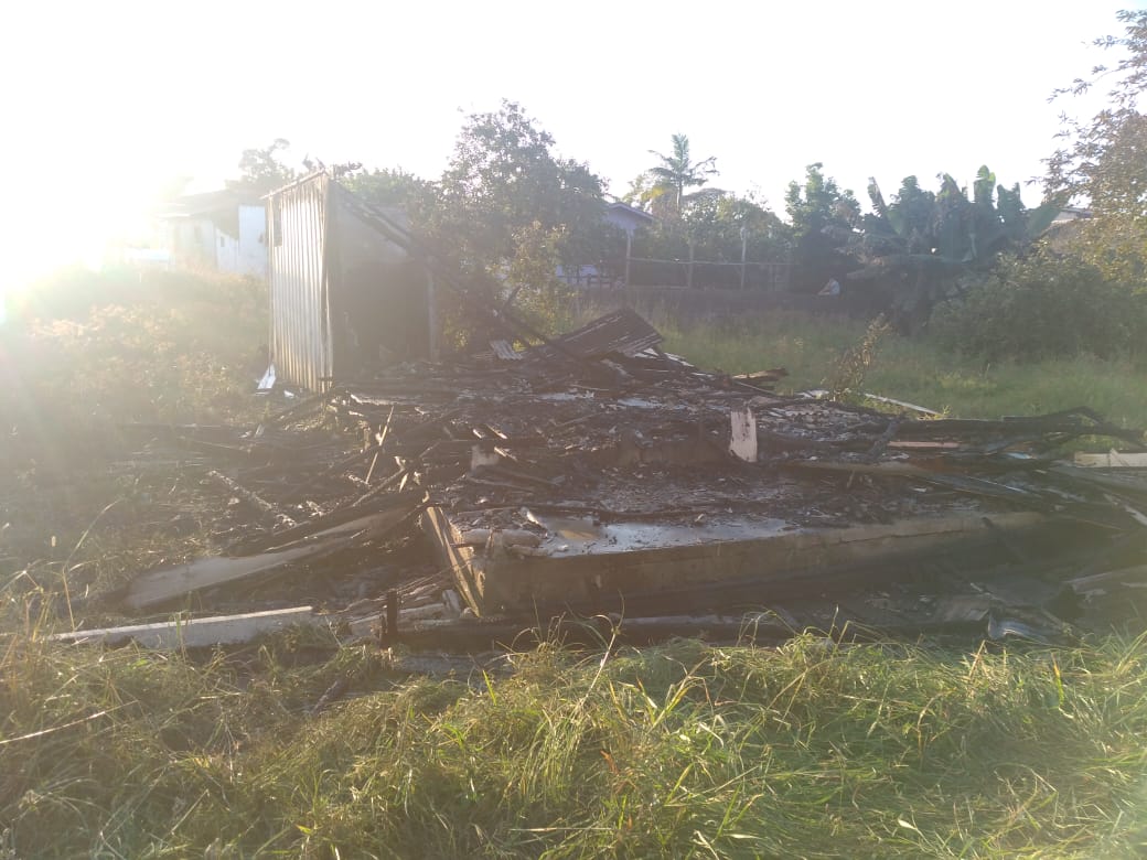 Uma residência ficou totalmente destruída após pegar fogo na tarde desta quinta-feira (25), no bairro Cidade Alta, em Araranguá.