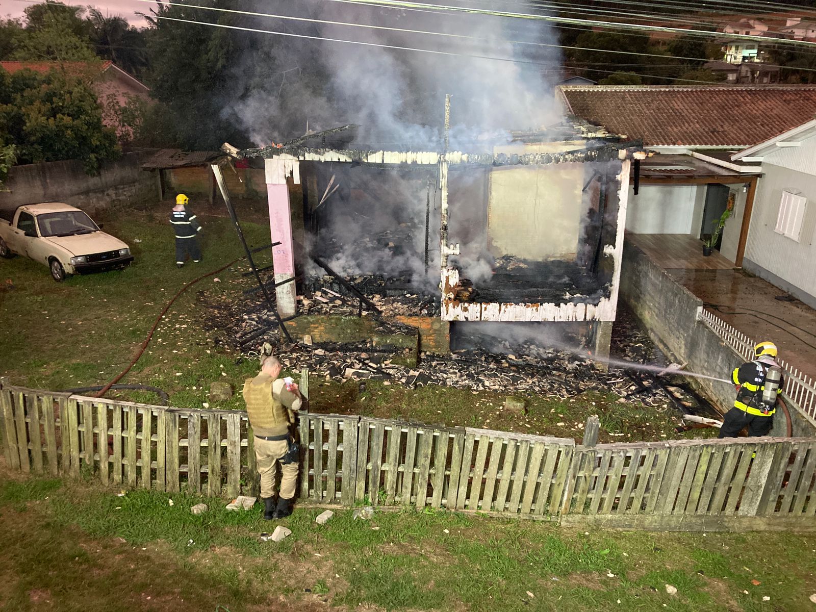 A guarnição dos bombeiros foi acionado no início da noite deste sábado (10), por causa de um registro de incêndio no bairro Vila Nova em Cocal do Sul. Chegando no local, os bombeiros encontraram um edificação mista (parte alvenaria e madeira), pegando fogo. Foi realizado o isolamento do local com apoio da Policia Militar, retirado botijão de GLP, bem como cortado o fornecimento de energia elétrica diretamente no poste.