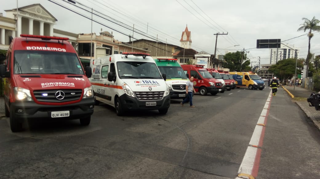 Cerca de 50 integrantes do Corpo de Bombeiros Voluntários de Joinville atuaram nos resgates que também tiveram o apoio do Samu, Defesa Civil e até ambulâncias  de empresas particulares.