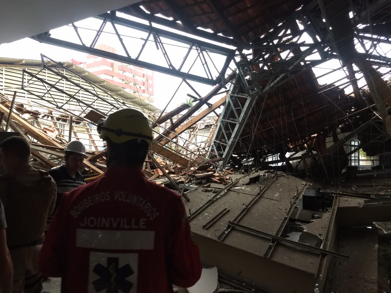 O desabamento de parte do telhado da Piazza Itália, no bairro Anita Garibaldi, Zona Sul de Joinville, deixou pelo menos nove pessoas feriadas, a maioria servidores da Prefeitura de Joinville.