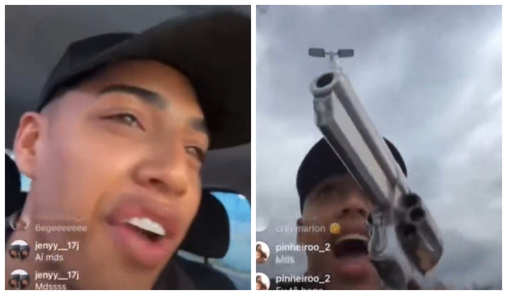 Um assaltante fez uma live no Instagram enquanto cometia roubos no Rio de Janeiro. Os crimes aconteceram na Avenida Santa Cruz, no acesso ao Viaduto do Lameirão, na Zona Oeste do Rio.