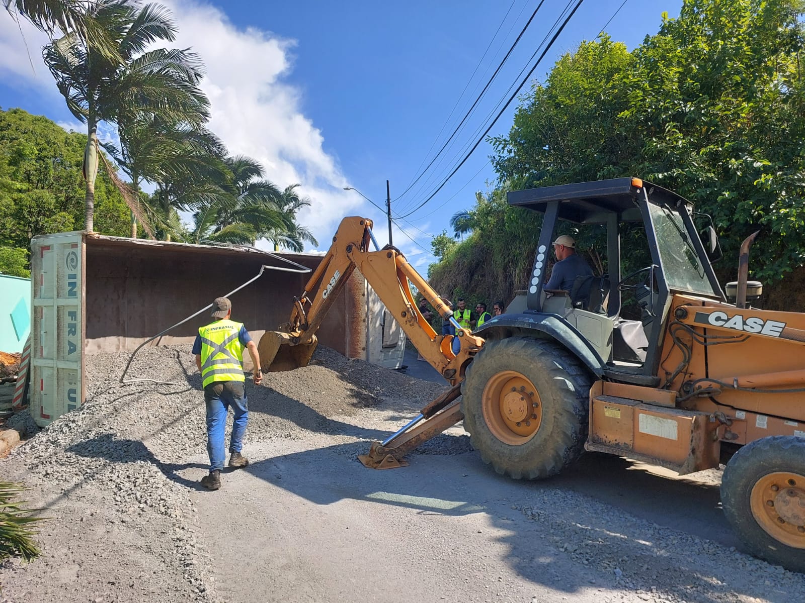 Na sequência, o caminhão, que transportava brita, tombou e interditou a rua.