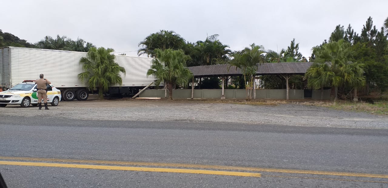 Uma carreta atingiu um bar e destruiu uma cancha de bocha às margens da SC-108, a Rodovia do Arroz, na manhã desta segunda-feira (1). Foi por volta das 8 horas, no quilômetro 11,9 da rodovia, no acesso à Estrada Dedo Grosso, entre Joinville e Guaramirim.