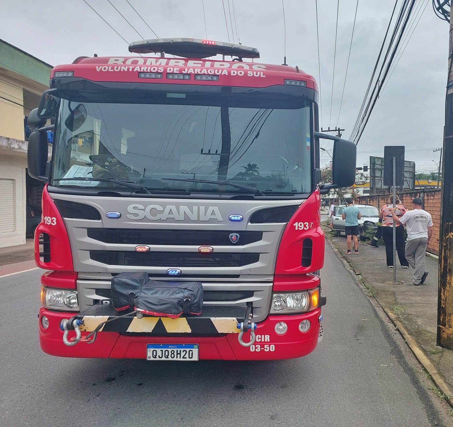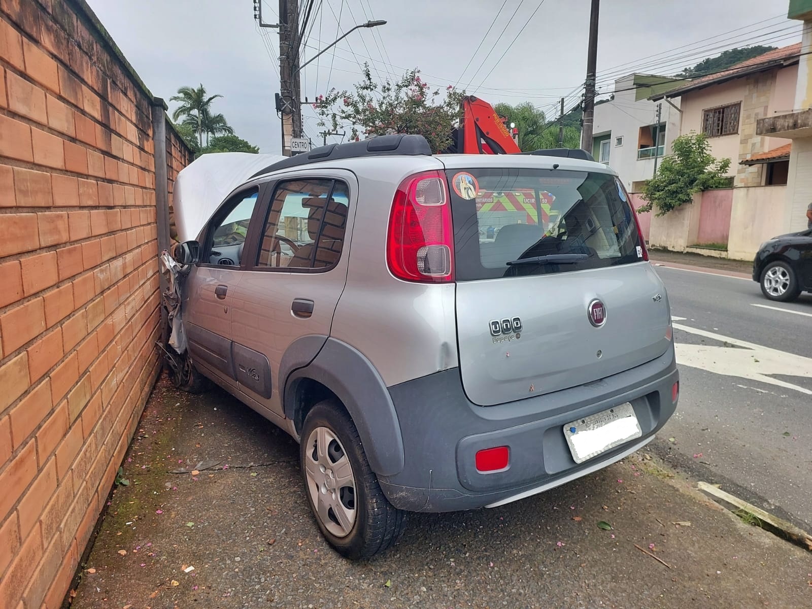 Na manhã desta quarta-feira (21), os bombeiros voluntários foram acionados após um carro bater em um muro em Jaraguá do Sul.