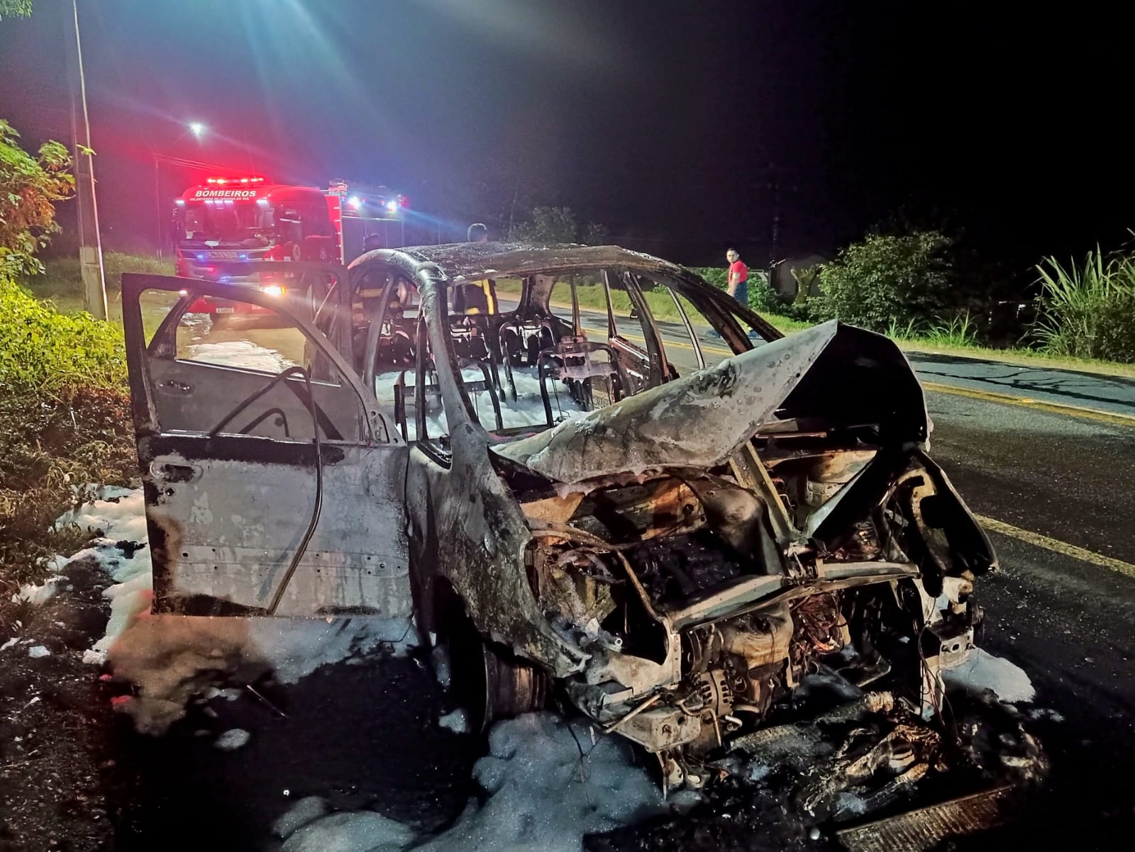Segundo a corporação, o carro já estava totalmente tomado pelas chamas quando as equipes chegaram.