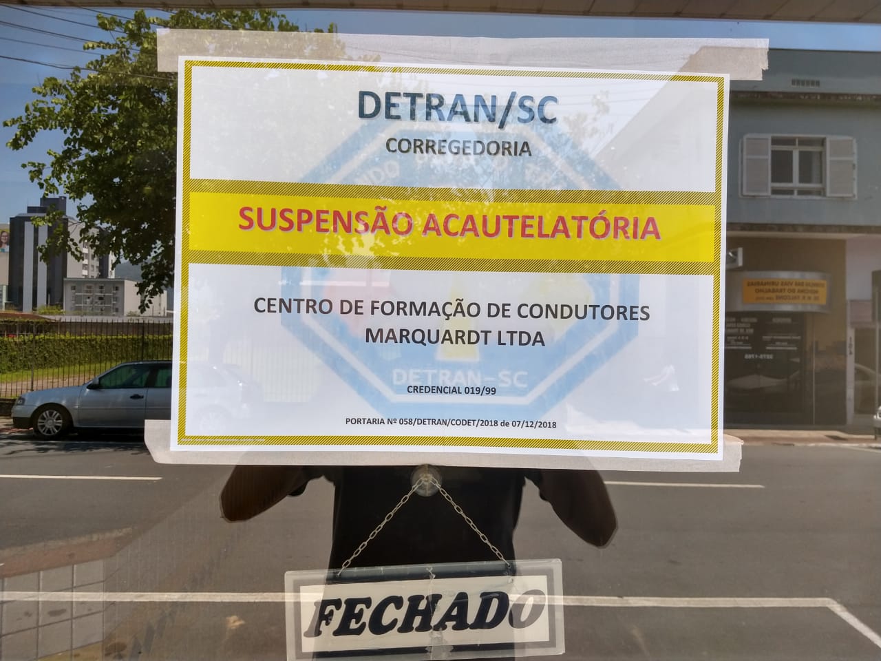 Na manhã desta terça-feira (11), uma equipe de sete pessoas da corregedoria do Detran/SC, estiveram em Jaraguá do Sul para interditar provisoriamente as quatro autoescolas citadas inicialmente na operação “Sinal Vermelho” que desarticulou um esquema de pagamento de vantagens financeiras para o examinador de trânsito da cidade em troca de facilidades no processo de habilitação.
