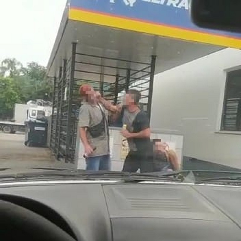 Um vídeo mostra uma briga em um posto de combustíveis em Jaraguá do Sul.
