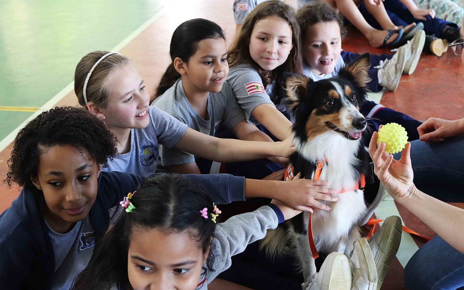 Cachorrinha Amora iniciou o adestramento há um ano e hoje é presença constante nos eventos de conscientização